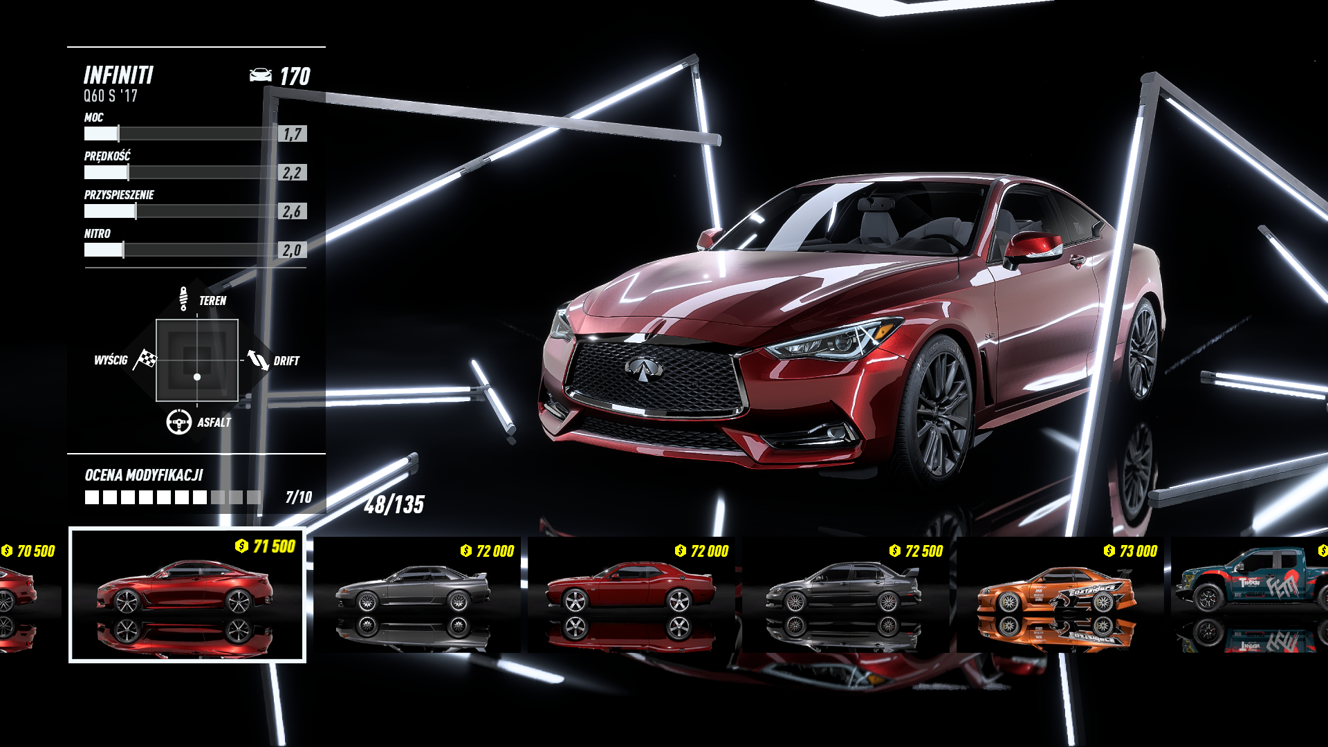| Infiniti Q60 S | 2017 | Sportowy | 170 | 71,500 | 400 | 809 | 7/10 | Osiągnij 8 poziom REP | Podstawowa wersja gry | |