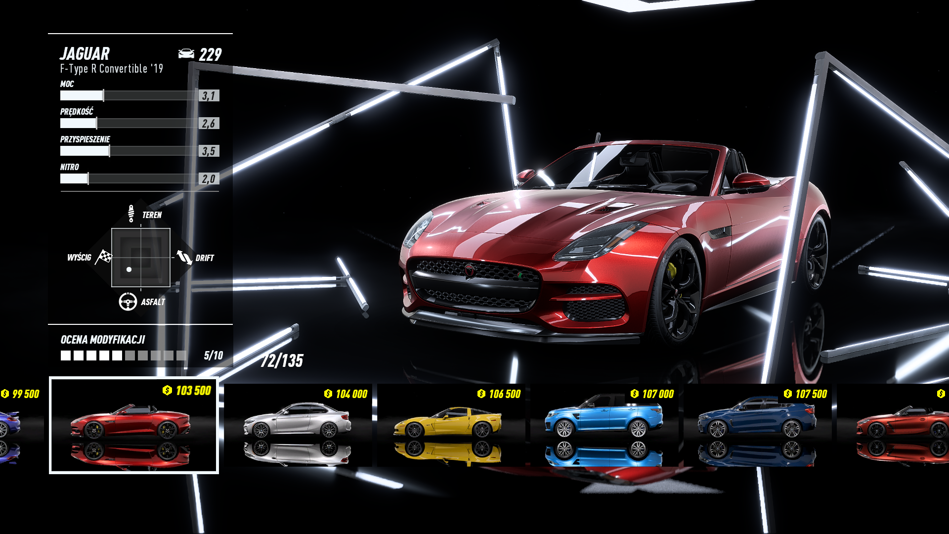 | Jaguar F-Type R Convertible | 2019 | Kabriolet | 229 | 103,500 | 542 | 1215 | 4/10 | Osiągnij 18 poziom REP | Podstawowa wersja gry | |