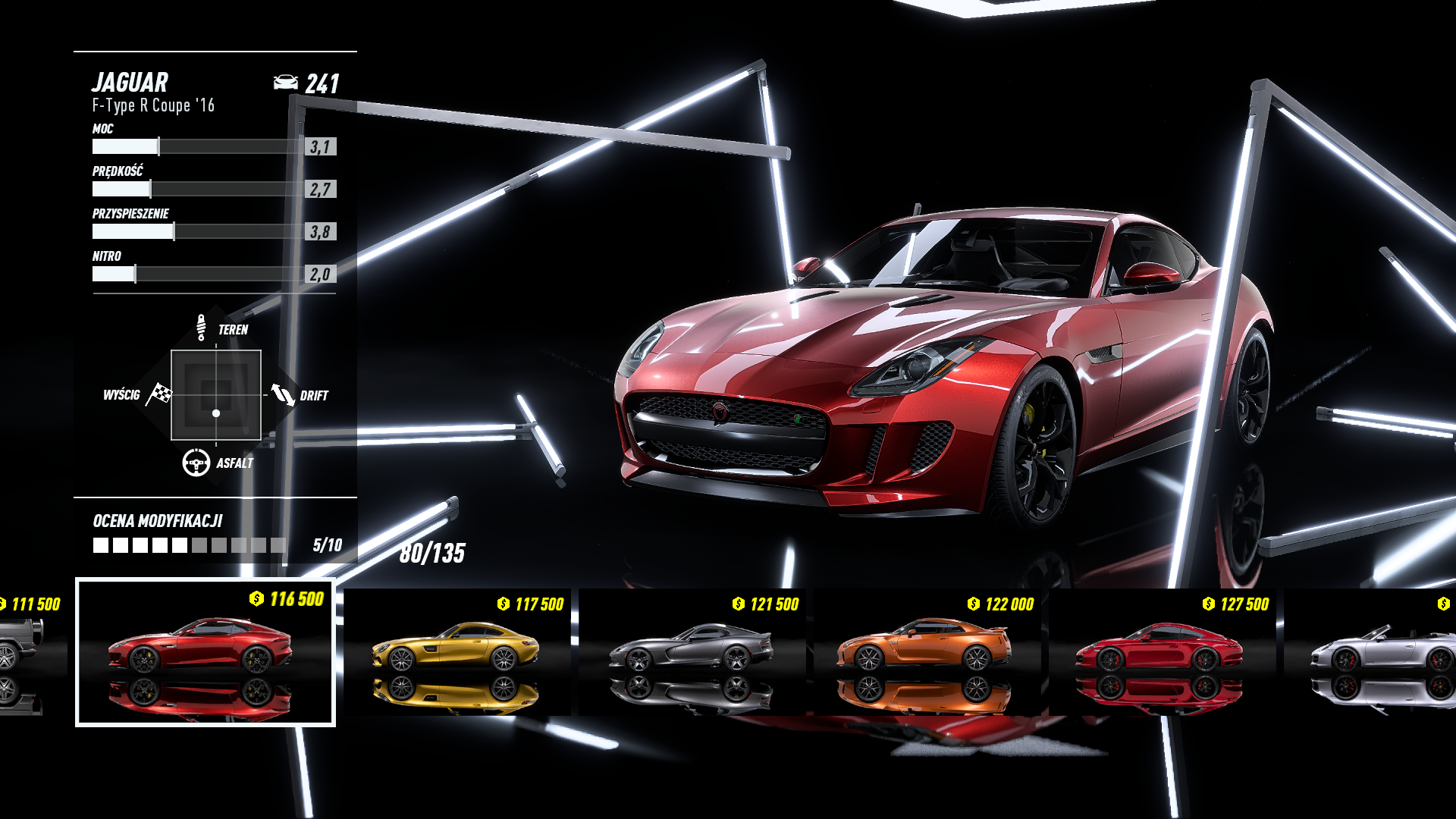 | Jaguar F-Type R Coupé | 2016 | Sportowy | 241 | 116,500 | 542 | 1215 | 5/10 | Osiągnij 20 poziom REP | Podstawowa wersja gry | |