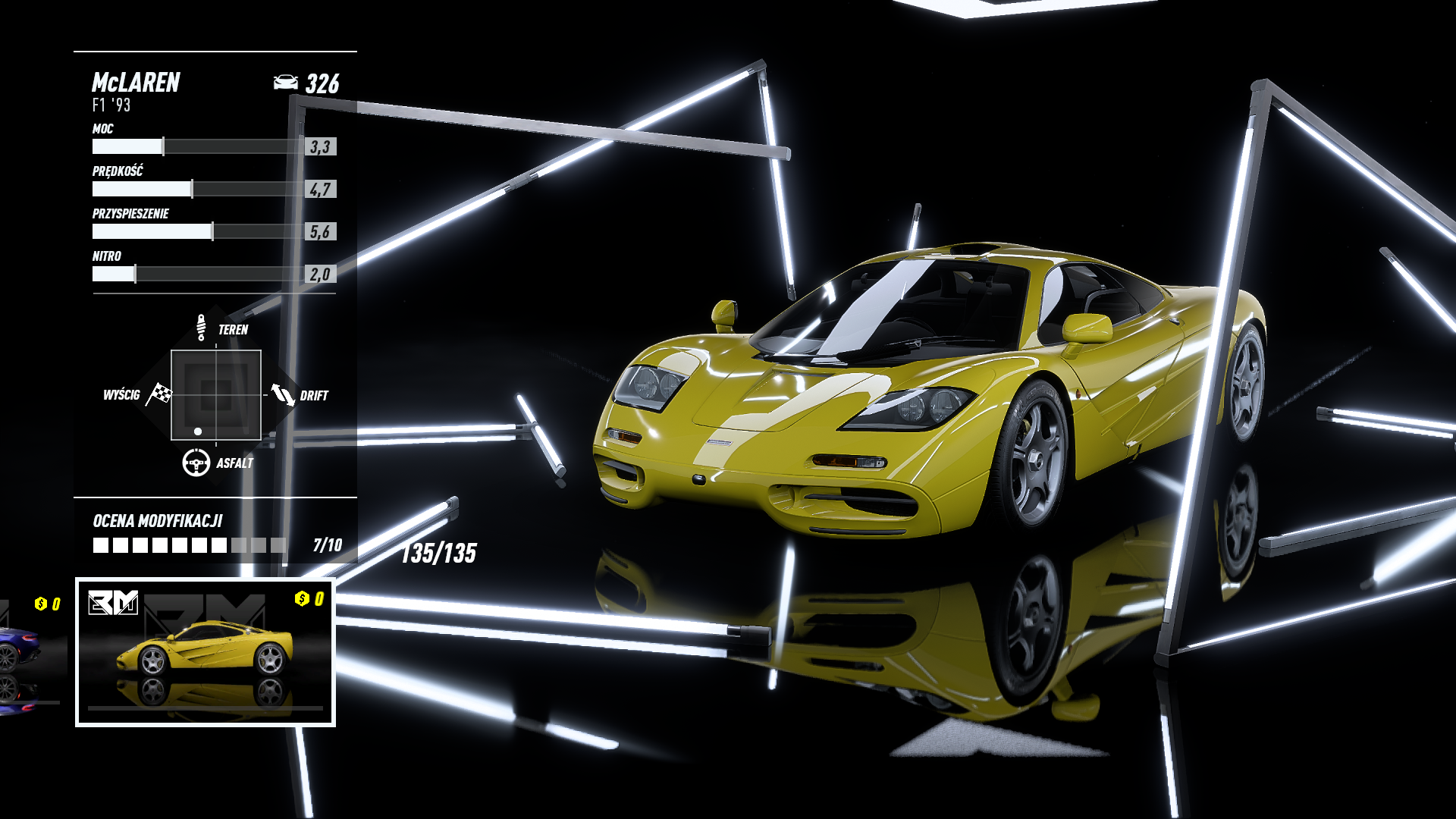 | McLaren F1 | 1993 | Supersamochód | 326 | 0 | 618 | 1100 | 7/10 | Osiągnij 30 poziom REP | Podstawowa wersja gry | Aktualizacja Black Market |