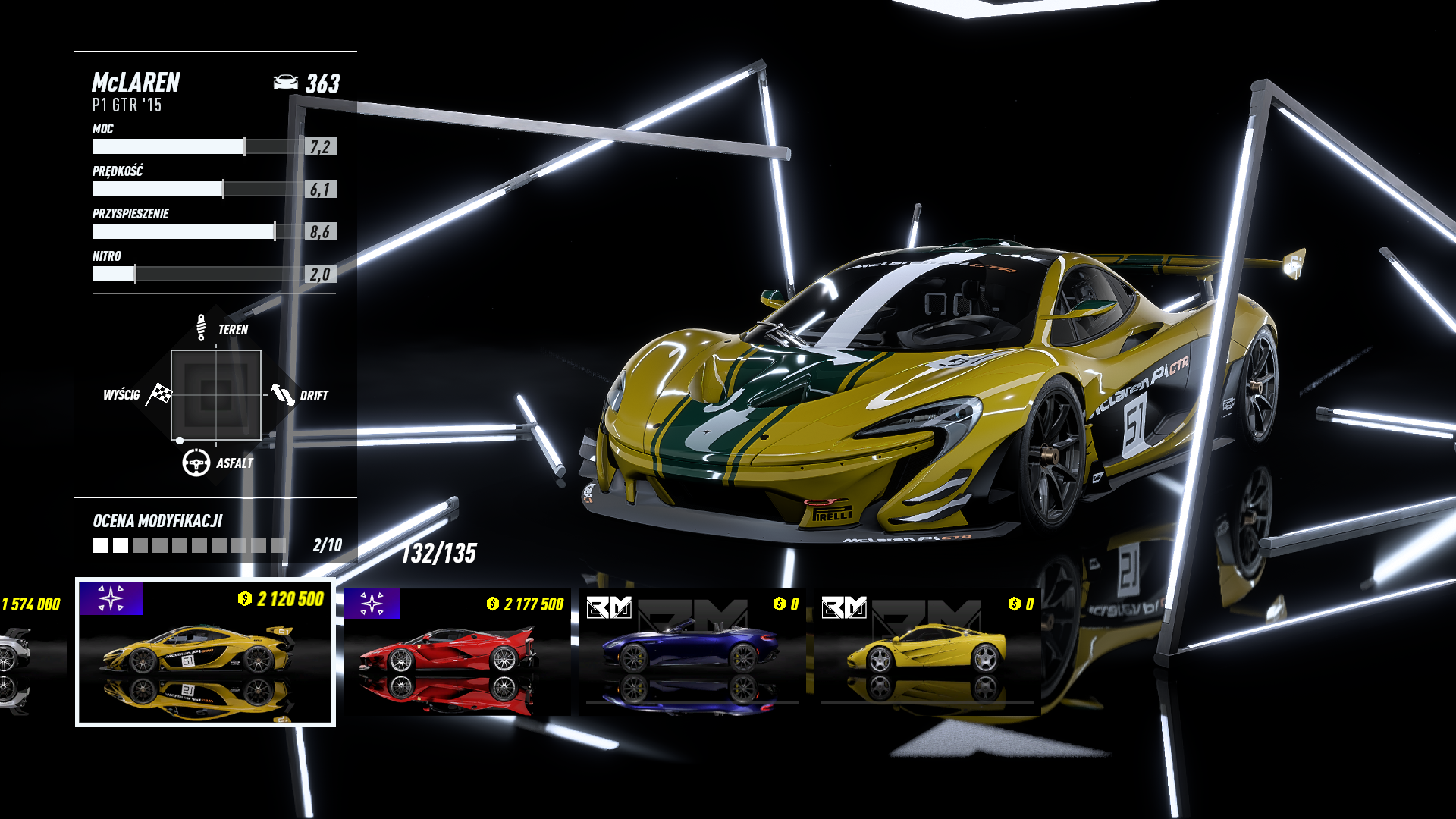 | McLaren P1 GTR | 2015 | Hipersamochód | 363 | 2,120,500 | 986 | 1209 | 2/10 | Osiągnij 40 poziom REP | Podstawowa wersja gry | |