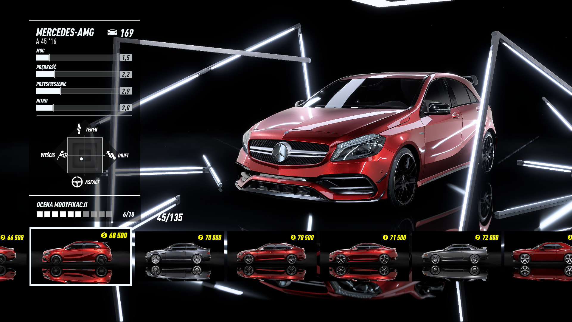 | Mercedes-AMG A 45 | 2016 | Hot hatch | 169 | 68,500 | 355 | 641 | 6/10 | Osiągnij 8 poziom REP | Podstawowa wersja gry | |