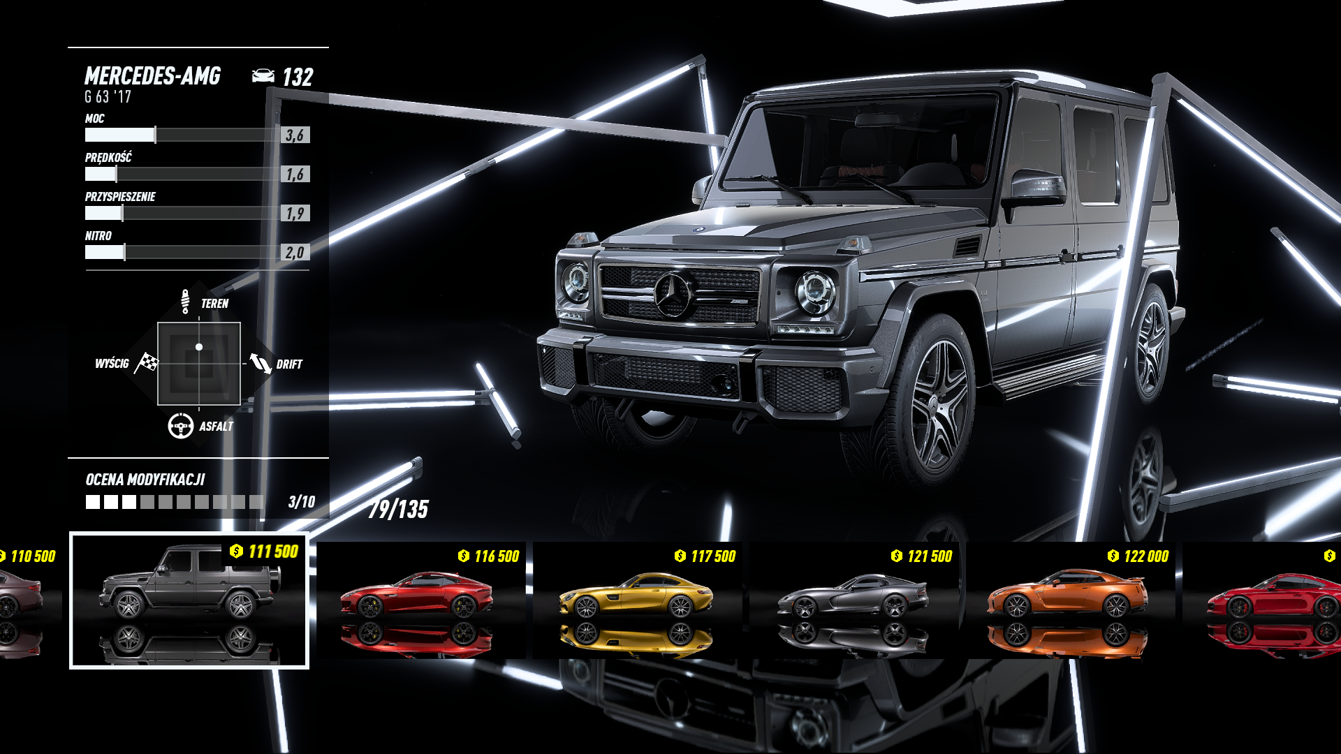 | Mercedes-AMG G 63 | 2017 | SUV | 132 | 111,500 | 563 | 1239 | 3/10 | Osiągnij 20 poziom REP | Podstawowa wersja gry | |