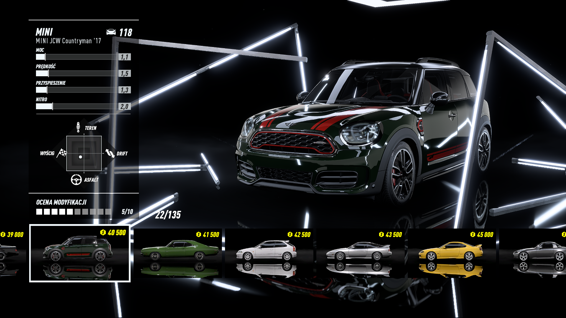 | Mini JCW Countryman | 2017 | Hot hatch | 118 | 40,500 | 228 | 584 | 5/10 | Osiągnij 22 poziom REP | Podstawowa wersja gry | |