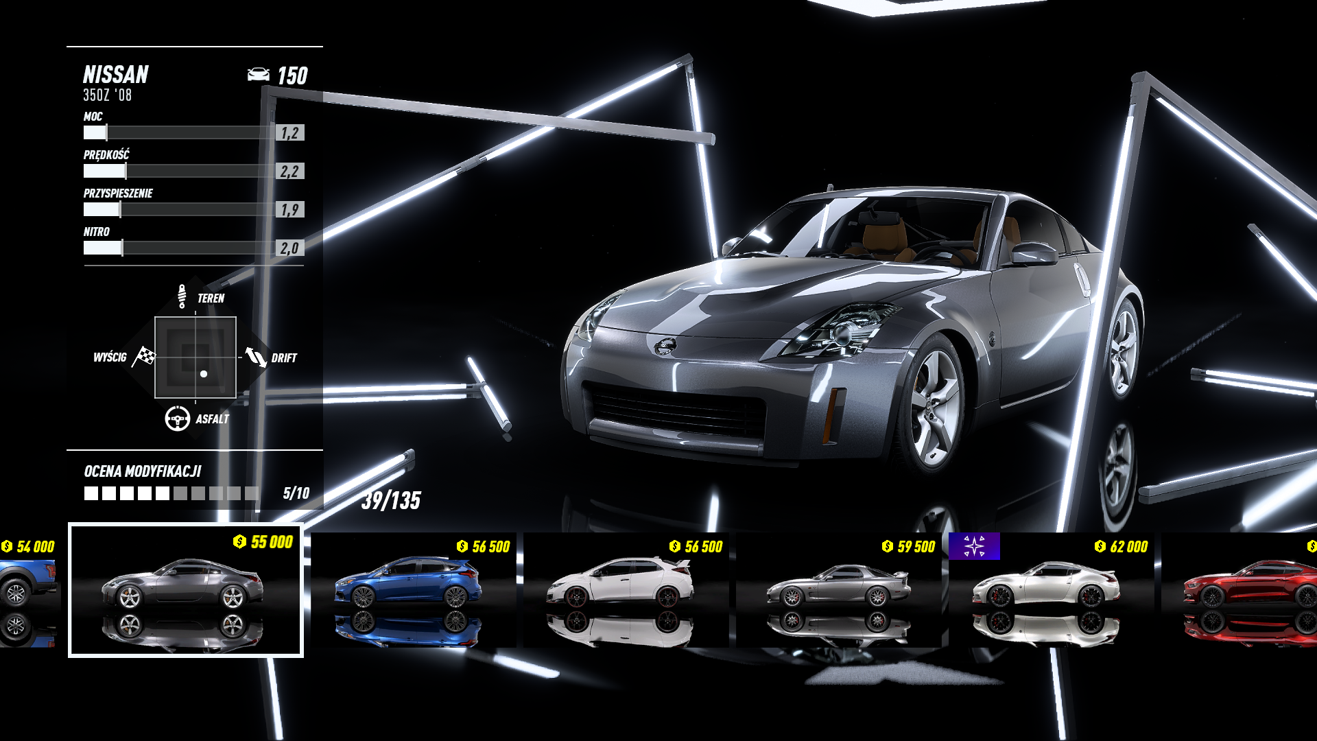 | Nissan 350Z | 2008 | Coupé | 150 | 55,000 | 306 | 913 | 5/10 | Osiągnij 12 poziom REP | Podstawowa wersja gry | |