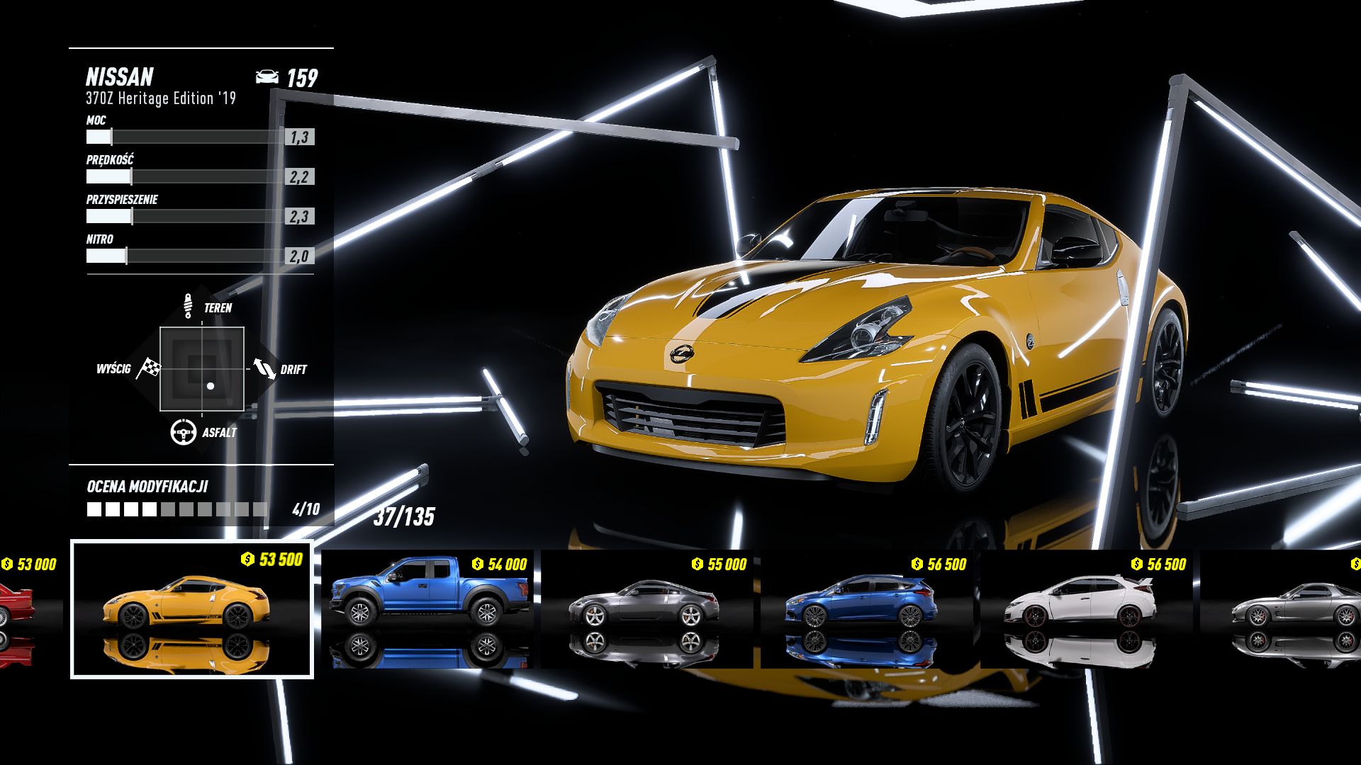 | Nissan 370Z Heritage Edition | 2019 | Coupé | 159 | 53,500 | 331 | 956 | 4/10 | Osiągnij 7 poziom REP | Podstawowa wersja gry | |