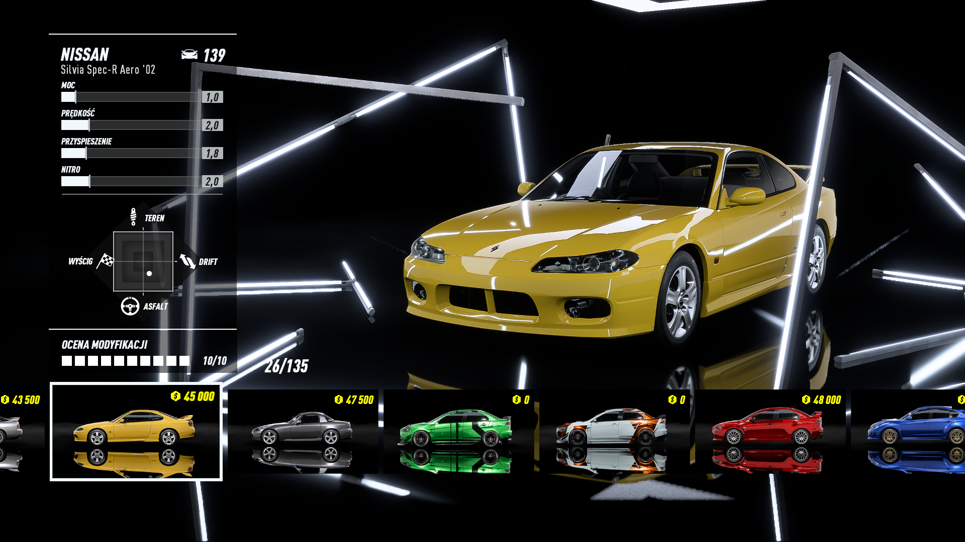 | Nissan Silvia Spec-R Aero | 2002 | Coupé | 139 | 45,000 | 247 | 584 | 10/10 | Osiągnij 3 poziom REP | Podstawowa wersja gry | |
