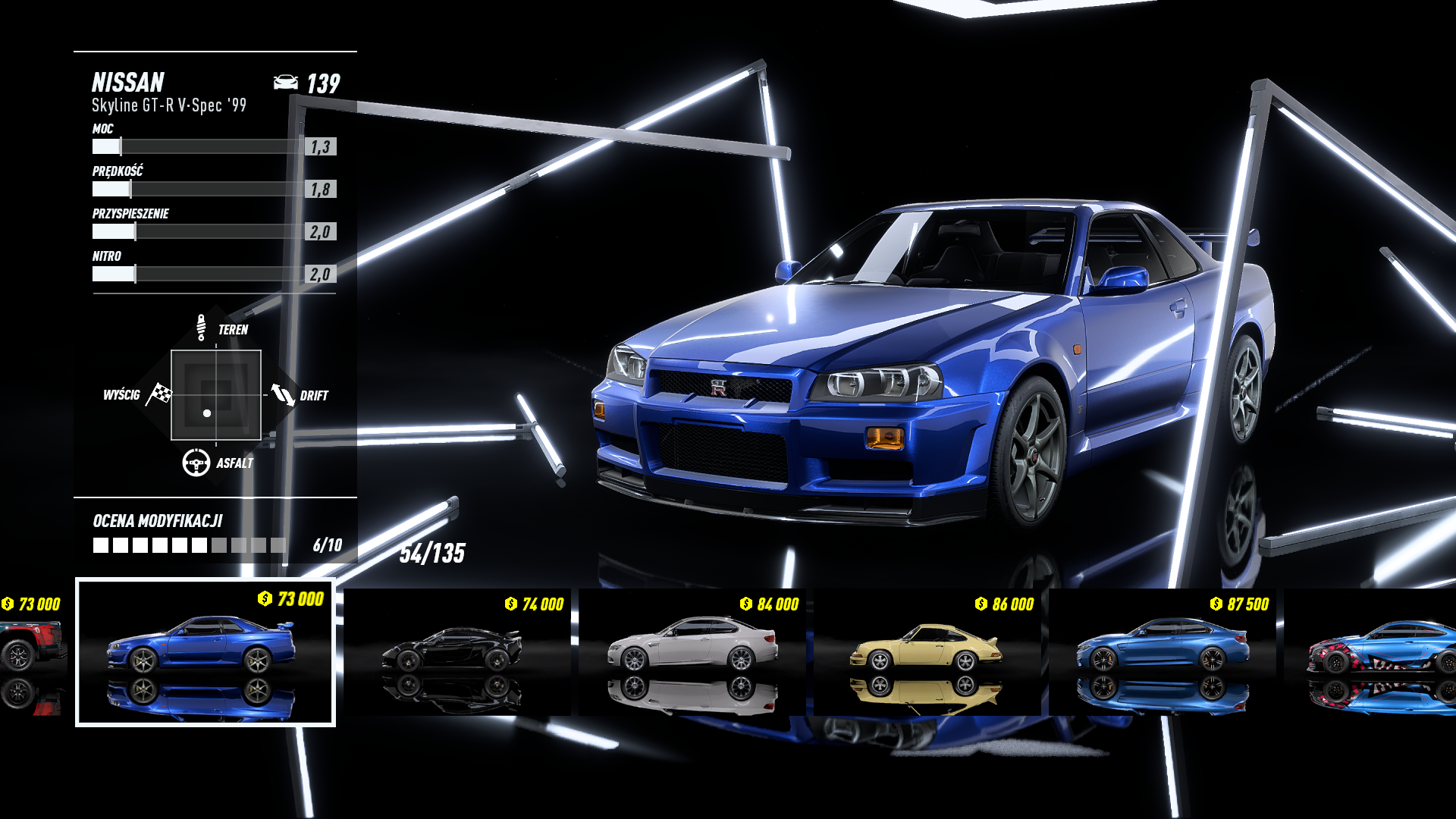 | Nissan Skyline GT-R V·Spec | 1999 | Coupé | 139 | 73,000 | 327 | 712 | 6/10 | Osiągnij 14 poziom REP | Podstawowa wersja gry | |