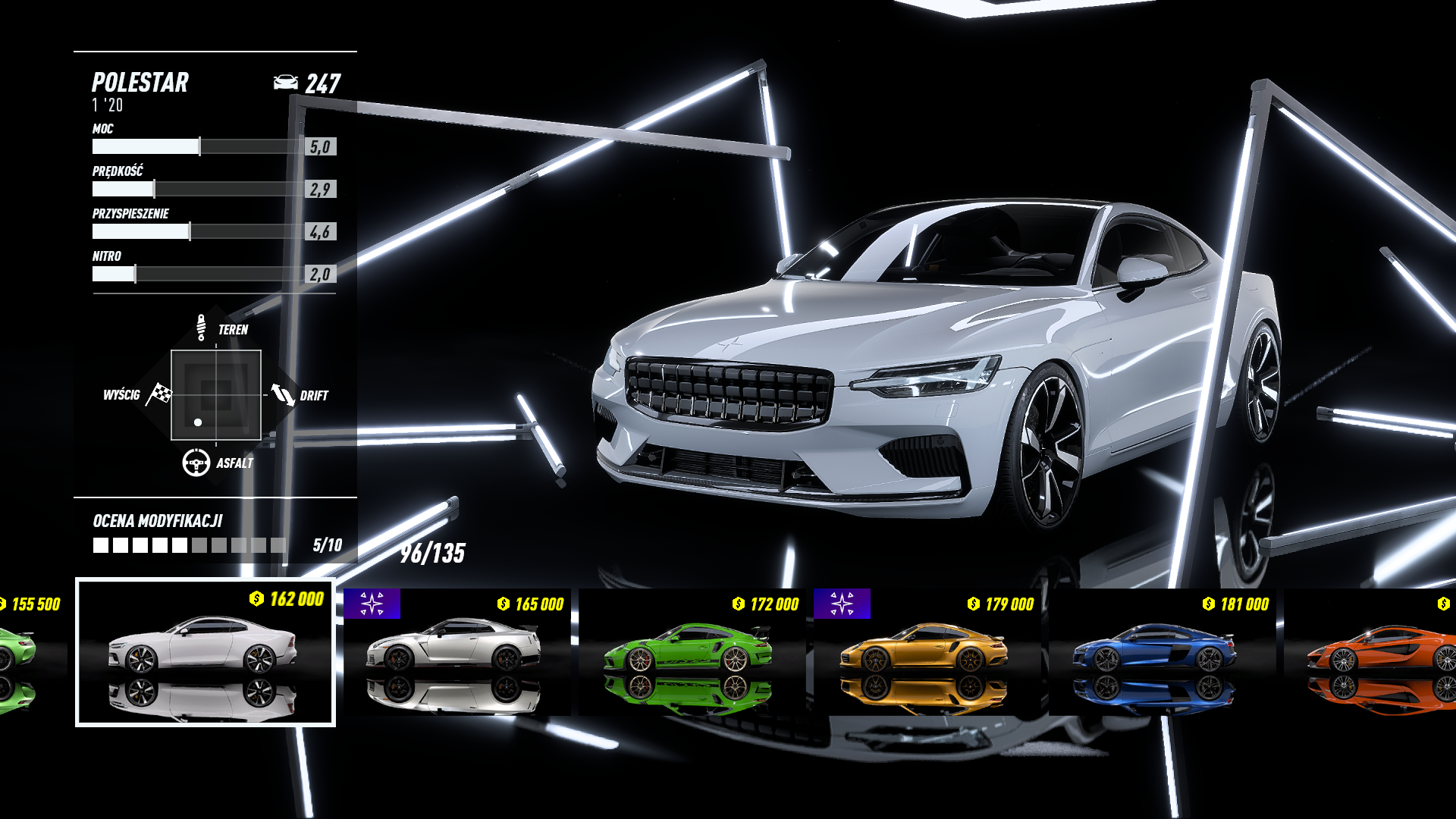 | Polestar 1 | 2020 | Coupé | 247 | 162,000 | 600 | 1089 | 5/10 | Osiągnij 22 poziom REP | Podstawowa wersja gry | |