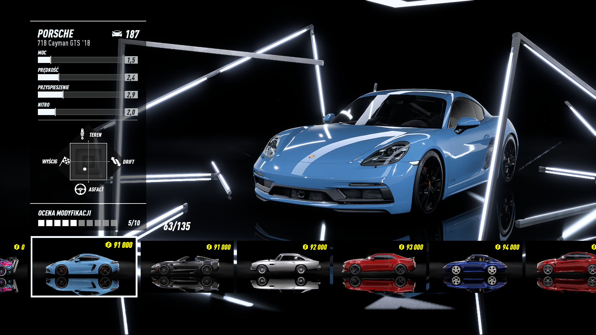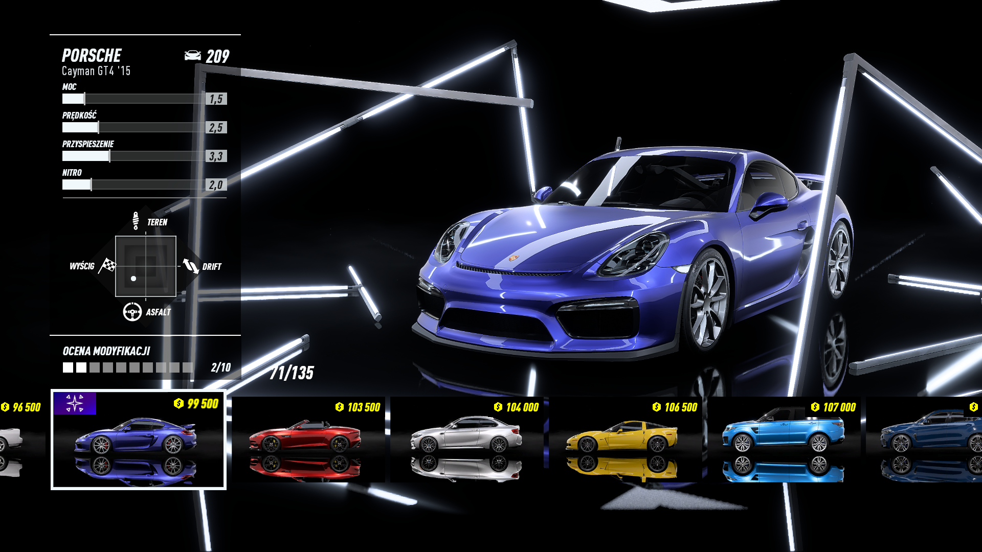 | Porsche 718 Cayman GTS | 2018 | Sportowy | 187 | 91,000 | 362 | 698 | 5/10 | Osiągnij 14 poziom REP | Podstawowa wersja gry | |