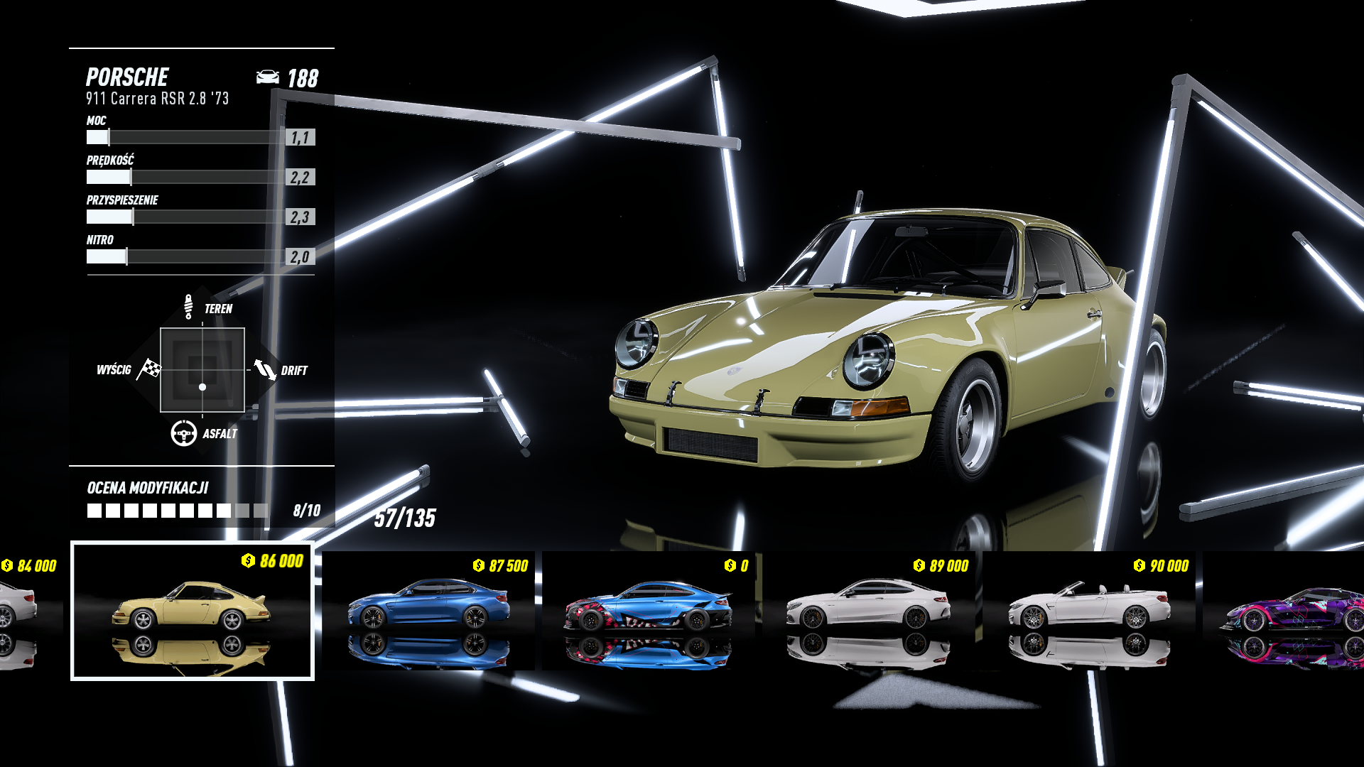 | Porsche 911 Carrera RSR 2.8 | 1973 | Sportowy | 188 | 86,000 | 308 | 763 | 8/10 | Osiągnij 16 poziom REP | Podstawowa wersja gry | |