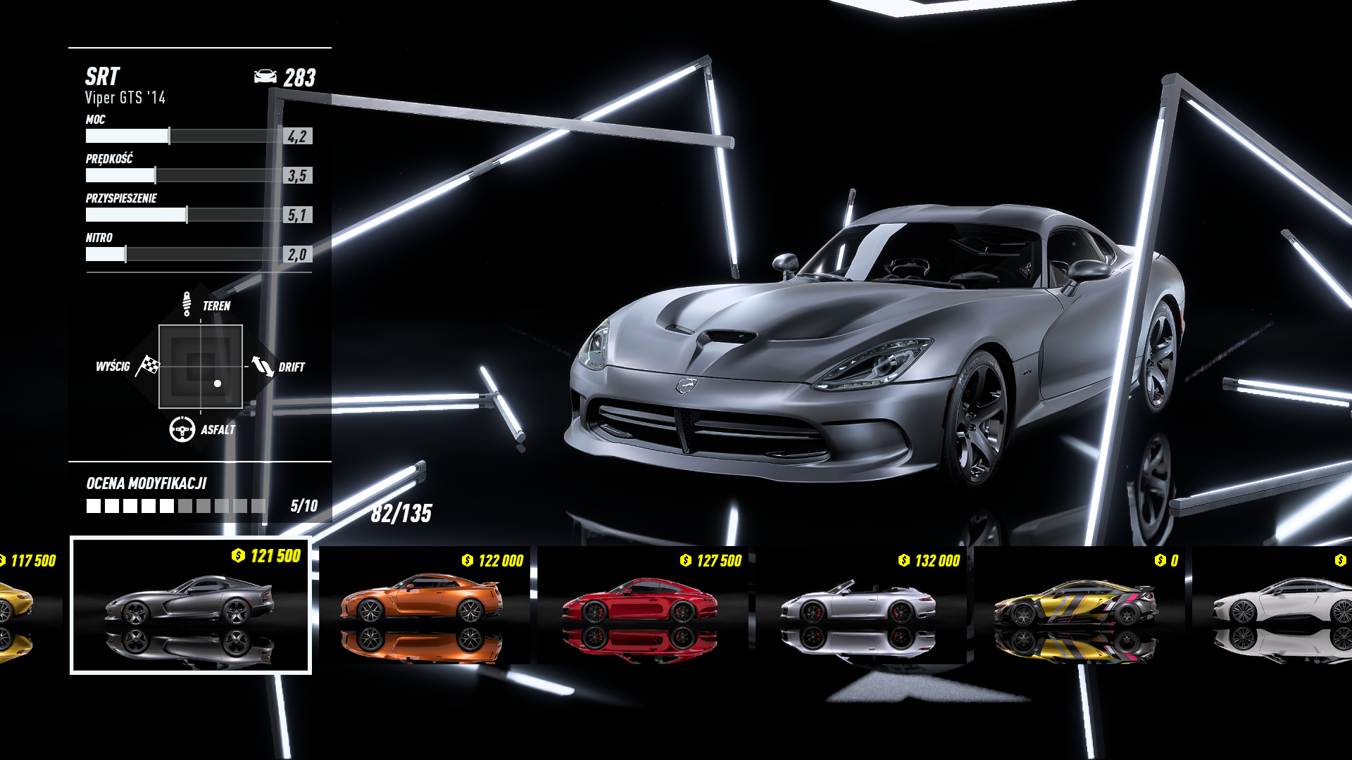 | SRT Viper GTS | 2014 | Sportowy | 283 | 121,500 | 640 | 1239 | 5/10 | Osiągnij 28 poziom REP | Podstawowa wersja gry | |