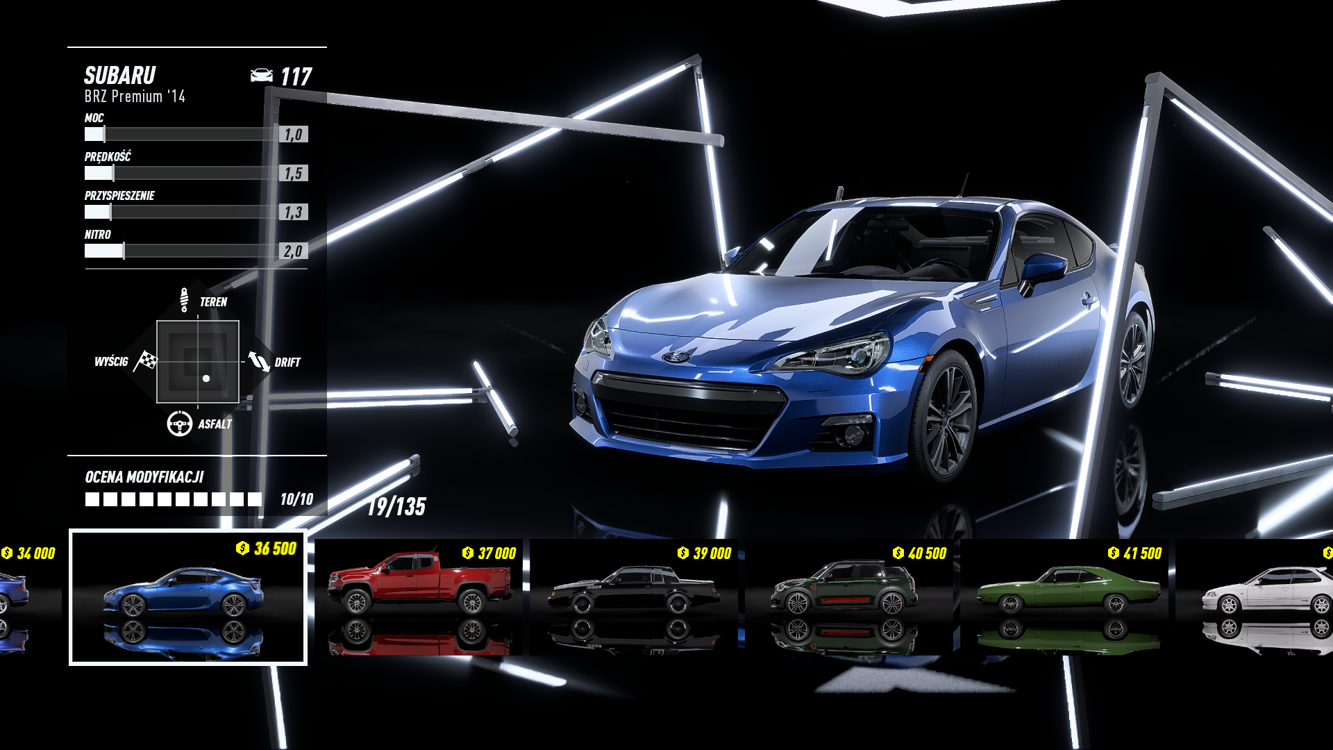| Subaru BRZ Premium | 2014 | Coupé | 117 | 36,500 | 197 | 584 | 10/10 | Osiągnij 14 poziom REP | Podstawowa wersja gry | |