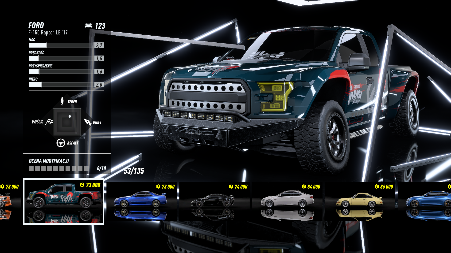 | Ford F-150 Raptor LE | 2017 | Pick-up | 136 | 73,000 | 440 | 913 | Ukończ misje terenowe w trybie fabularnym | Podstawowa wersja gry |
