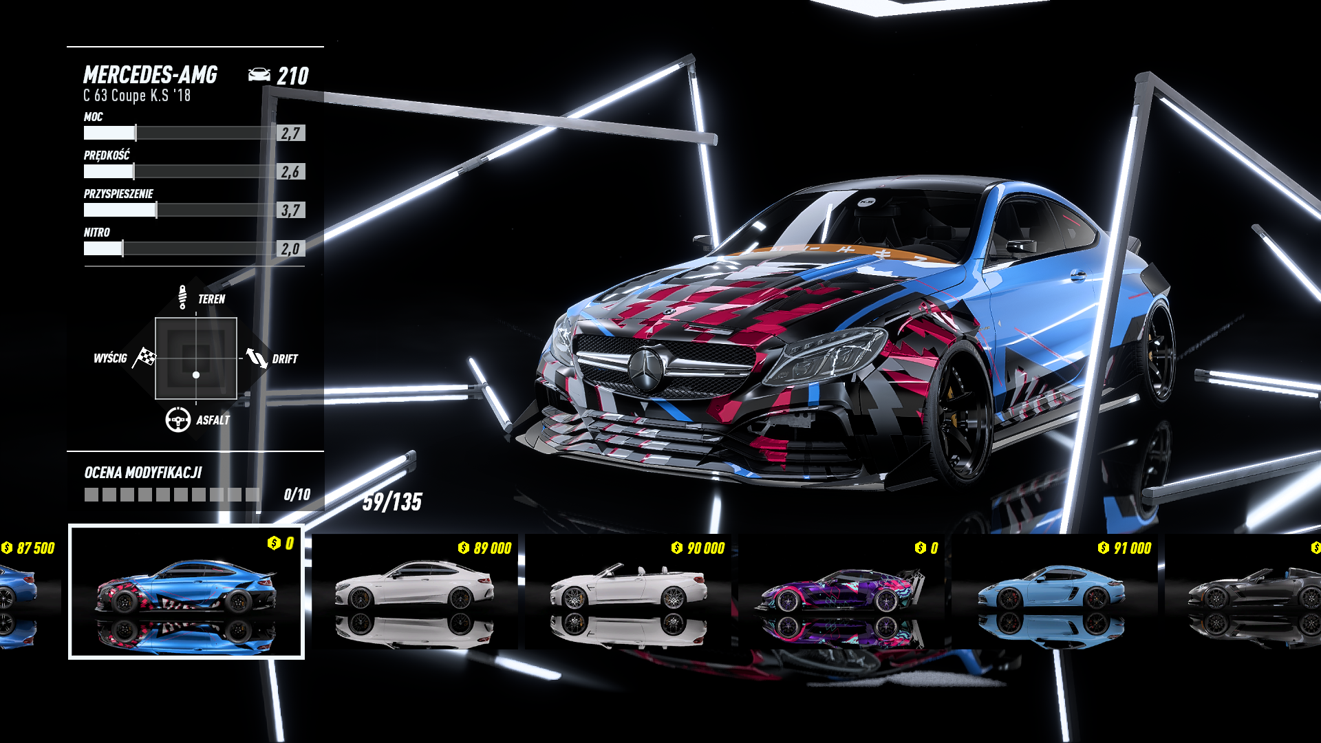 | Mercedes-AMG C 63 Coupé K.S. | 2018 | Coupé | 210 | 0 | 470 | 1005 | Osiągnij 14 poziom REP | Edycja Deluxe |