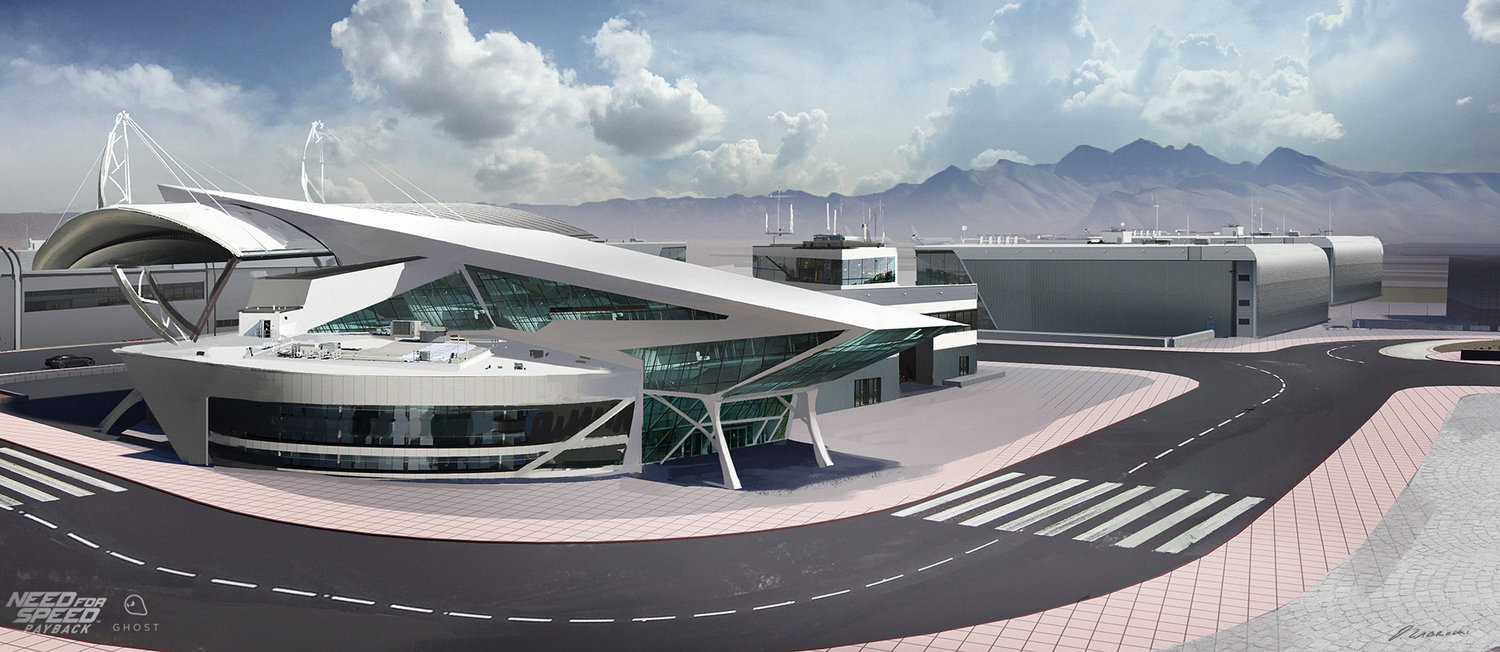 Stworzyłem kilka ciekawych konceptów związanych z lotniskiem, ale najbardziej podoba mi się ta oficjalna. Programiści bardzo dobrze odwzorowali lotnisko na podstawie tego konceptu. To niesamowite, jak dokładnie można odtworzyć w grze koncept, który wykonałeś!