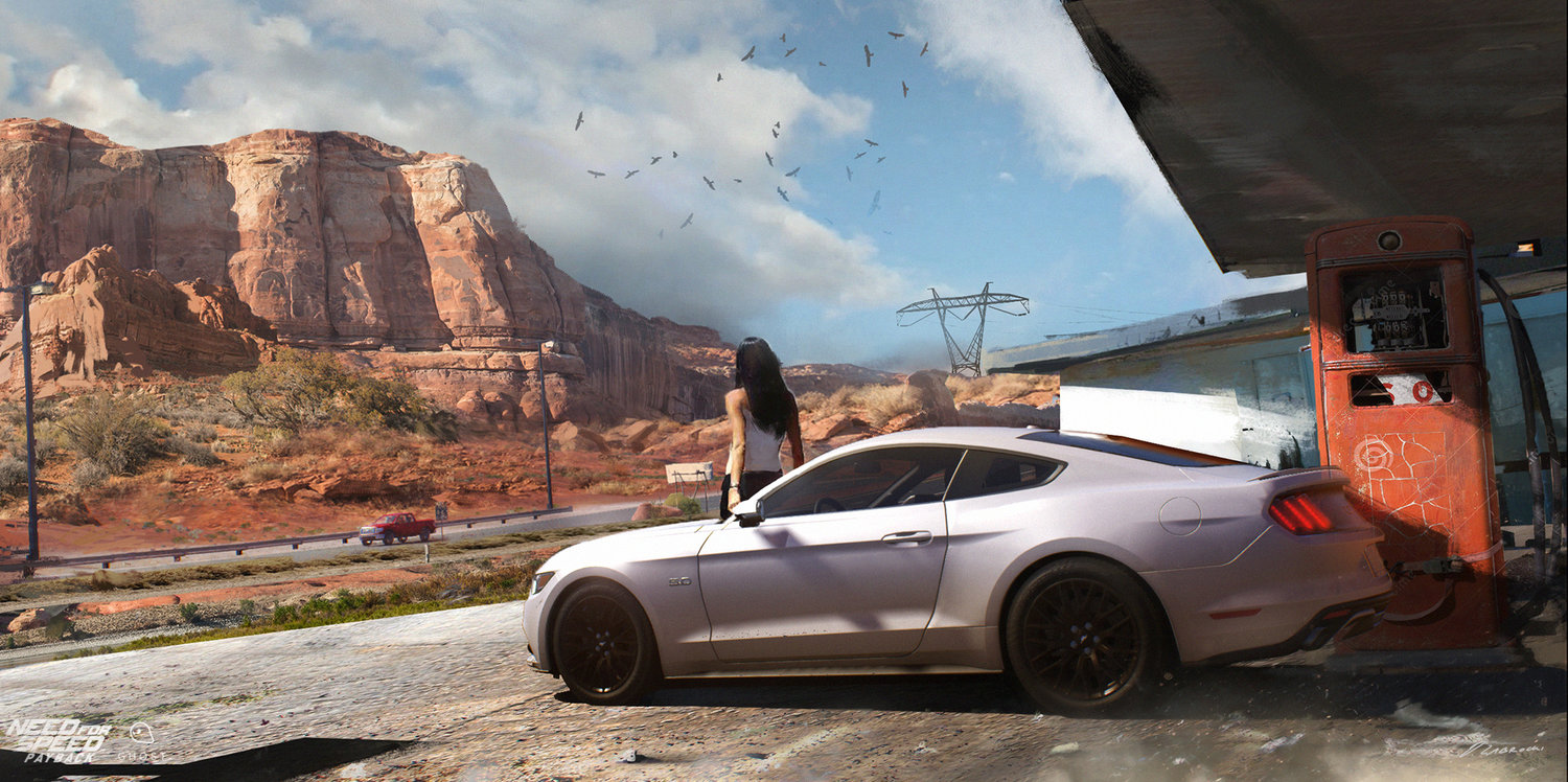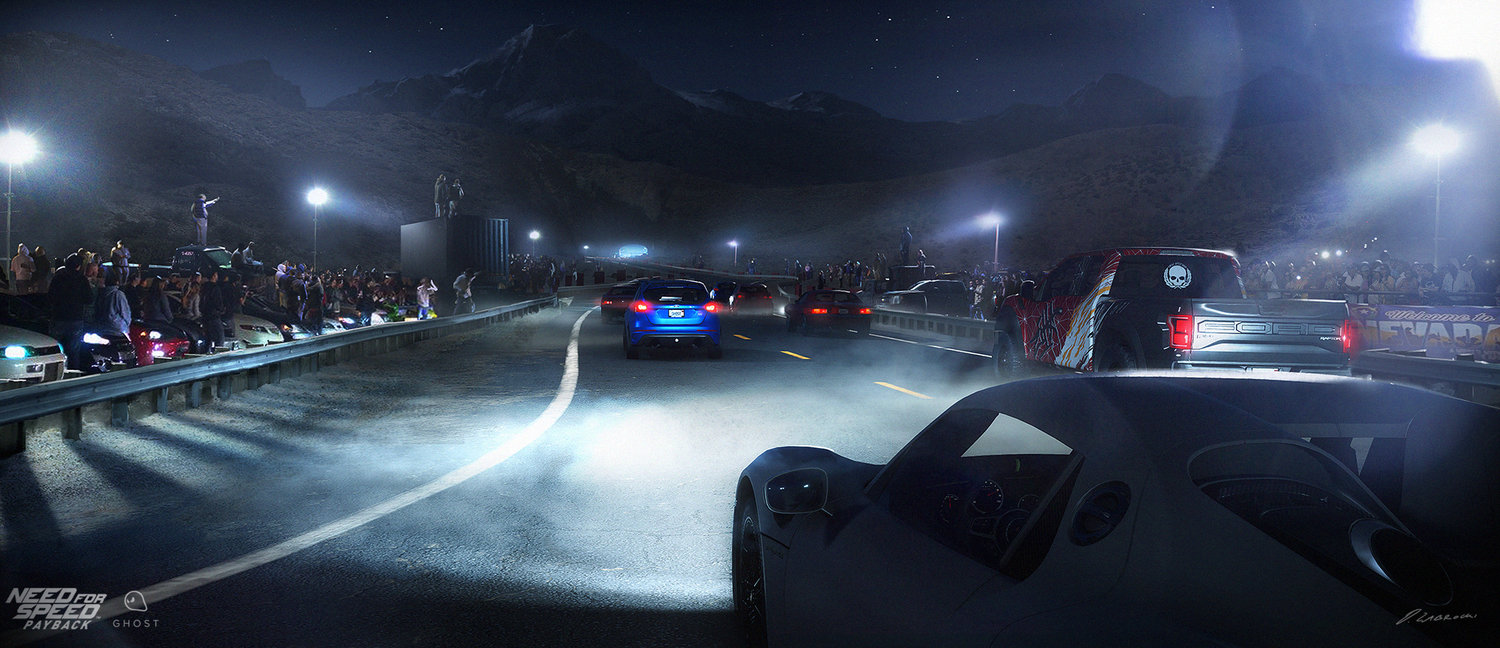 Dyrektor Artystyczny znalazł mnie w Internecie, a cały proces rekrutacji zlecił swojemu head hunterowi. W większości sytuacji to właśnie osoby decyzyjne przy projekcie - producent lub reżyser znajduje Cię, bo musi sobie dobrać osoby, które w danym momencie pasują do stylistyki, osoby którym chcą powierzyć swoją wizję. Współpraca z EA układała się bardzo dobrze - udostępnili mi apartament, był podstawiony samolot, taksówki. Oczywiście dbanie o pracownika jest zależne od szczebla, ale życzę sobie i innym, by tak każda firma traktowała pracownika. Z EA pracowałem ponad rok - od początku 2017 roku. Dużo rzeczy mieli z Need for Speed (2015), jak modele samochodów, modyfikacje. Względem innych produkcji, dość późno wykorzystali koncept artystów, ale to też jest taka specyficzna produkcja, gdyż prócz samych lokacji, zbyt dużo się nie wymyśli. Nie tworzy się nowych modeli, jedynie części do tuningu zewnętrznego. Jest dużo bardziej intensywny okres produkcyjny. Tworząc lokacje bardzo mocno bazowaliśmy na Las Vegas, ale to Las Vegas miało być trochę wyimaginowane. Musiałem stworzyć reinterpretację tego miejsca ze względu na licencje. Do tego zaprojektowanie krajobrazów wiąże się z troszeczkę inną pracą, dużo bardziej kreatywnym podejściem niż do samego tuningu. Need for Speed jest na tyle specyficzną produkcją, że osoba, która projektuje samochody czy tuninguje je, jest tak samo potrzebna jak osoba, która projektuje mapy. Samochody w tej grze odgrywają główną rolę, ale po jakimś świecie w tej grze musimy się poruszać i tu już wkraczam ja. Need for Speed jest dość przyziemną produkcją - tu nie ma nieograniczonej swobody twórczej, bo to musi być wszystko w miarę realistyczne. Lokacje powinny przypominać te rzeczywiste, nie może być jakiś wyolbrzymionych, nierealistycznych krajobrazów, ani elementów Sci-Fi, dlatego ta produkcja jest dość specyficzna i nie dziwię się, że koncept artyści dość późno do tej produkcji dołączają. W Halo, Assassin's Creed, Doom, czy Quake koncept artyści są zatrudniani dużo wcześniej, bo tam że by cokolwiek powstało, musi być zarys tego jaki będzie charakter np. architektury, czy styl designu, cała estetyka projektu, która jest bardzo ważna na początku, a Need for Speed to samochody i świat oparty o rzeczywistość. Nasza rola jest dość ograniczona w takich produkcjach. Dla kontrastu w Maze Runner: Death Cure projektowałem całe miasto. Tam jako podstawę posłużyło nam miasto Vancover, ale tylko pod kątem infrastruktury, rozstawu ulic, a budynki mogłem już na swój sposób designować, dodawać elementy, projektować cały ten świat, więc praktycznie miałem nieograniczoną swobodę działania.