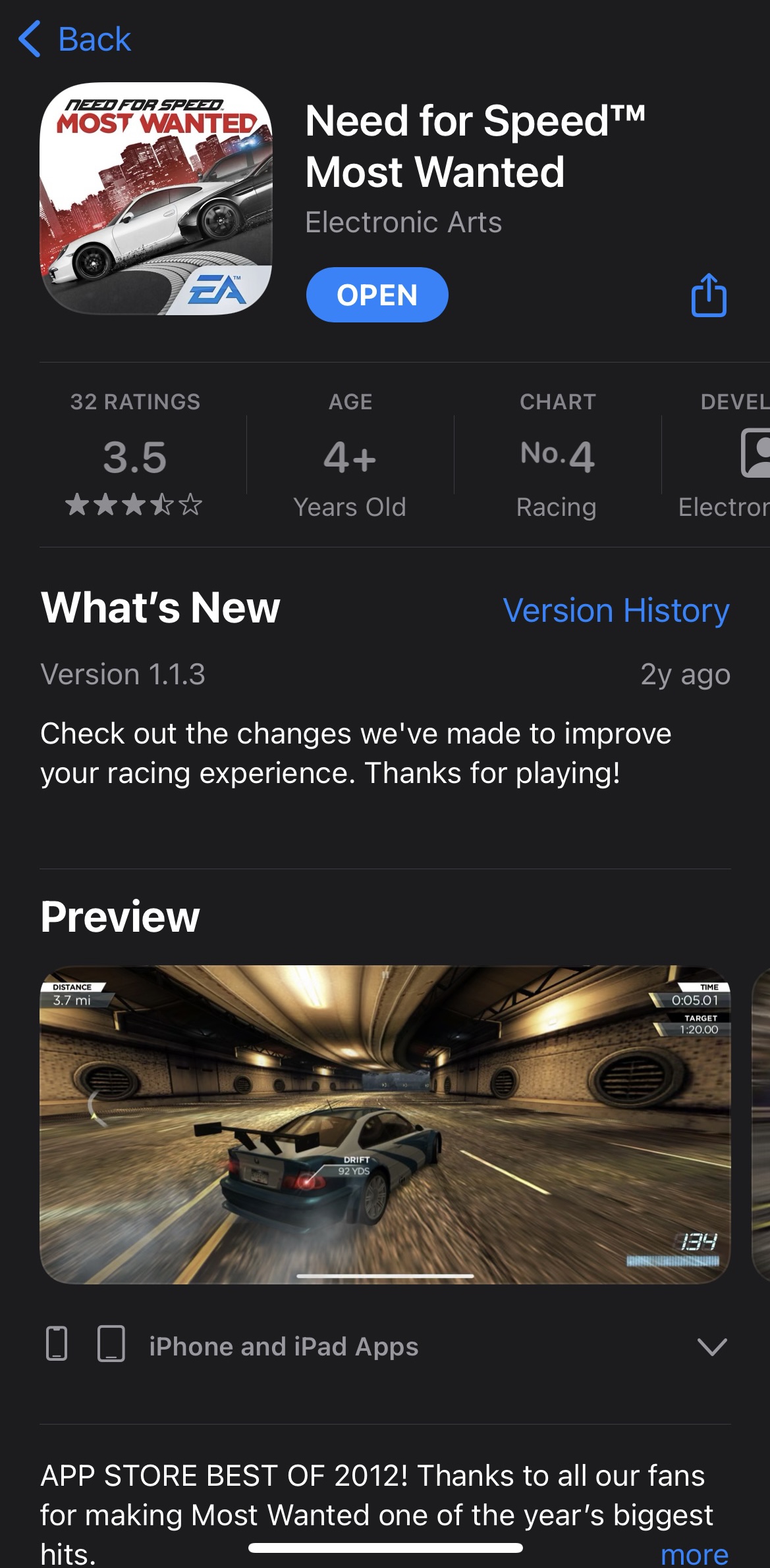 Po 10 latach mobilny NFS Most Wanted 2012 wraca na Top listę w AppStore