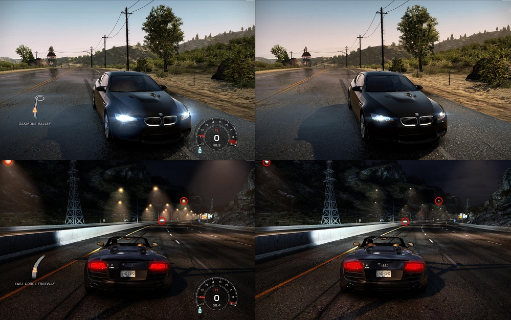 Modyfikacja ta poprawia efekty świetlne, takie jak przednie i tylnie światła czy oświetlenie ulicy. Przyznam że wygląda to bardzo realistycznie ale poza tym mod ten umożliwia nam wyłączenie HUD w grze.Poniżej możecie zobaczyć ss'y jak i filmik, na którym jest ukazane jak ta modyfikacja wygląda w grze. Co ciekawe, autorem modyfikacji nie jest EA czy Criterion a gracz o nicku An7hraX.