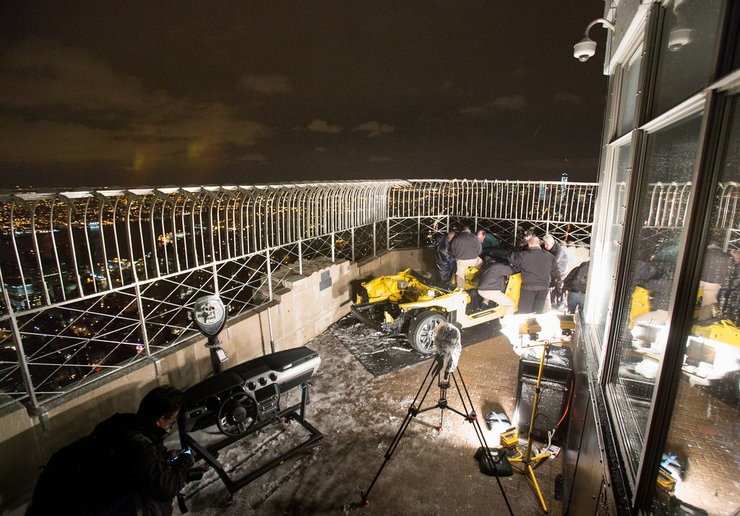 Obchodów 50-lecia powstania Forda Mustanga ciąg dalszy. Niewielu wie, a jeszcze mniej osób pamięta, że pierwsza wersja tego samochodu miała dość niecodzienną premierę, bowiem odbyła się ona na tarasie widokowym Empire State Building. W tym roku postanowiono powtórzyć ten wyczyn. Jak umieszczono samochód na szczycie wieżowca? Helikopter odpadł - między wieżowcami jest zbyt mała odległość, by bezpiecznie nim manewrować. Można było też postawić dźwig, ale to mało efektowny sposób. Postanowiono więc zrobić dokładnie to samo co 50 lat temu, a więc rozłożyć samochód na części, większe elementy pociąć na mniejsze, wszystko wwieźć windą na górę, po czym... zmontować samochód na tarasie widokowym. Cała operacja trwała ok. 6 tygodni i zakończyła się sukcesem.