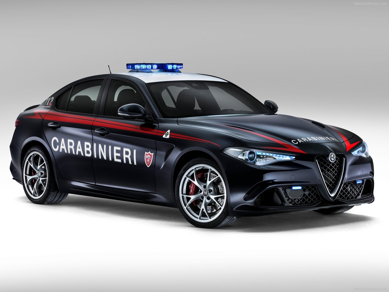 Jak już tak krążymy wokół Włoszech - Alfa Romeo zaprezentowała Giulię w wersji przeznaczonej dla Carabinieri. I to nie byle jaką - mowa o Giulii Quadrifoglio. Czy Carabinieri poradzą sobie z V6 konstrukcji Ferrari i mocą 510 KM? Zapewne tak, gdyż wcześniej czołówka włoskiej policji wyposażona była w Lotusy Evora S. Giulie Quadrifoglio dostarczone zostaną policjantom razem z Jeepami Renegade i Fiatami Panda 4x4. Razem - około 800 sztuk. Ciekawe, ile z tego to piękne Giulie... Wychodzi na to, że nie tylko w czerwonym jej do twarzy.