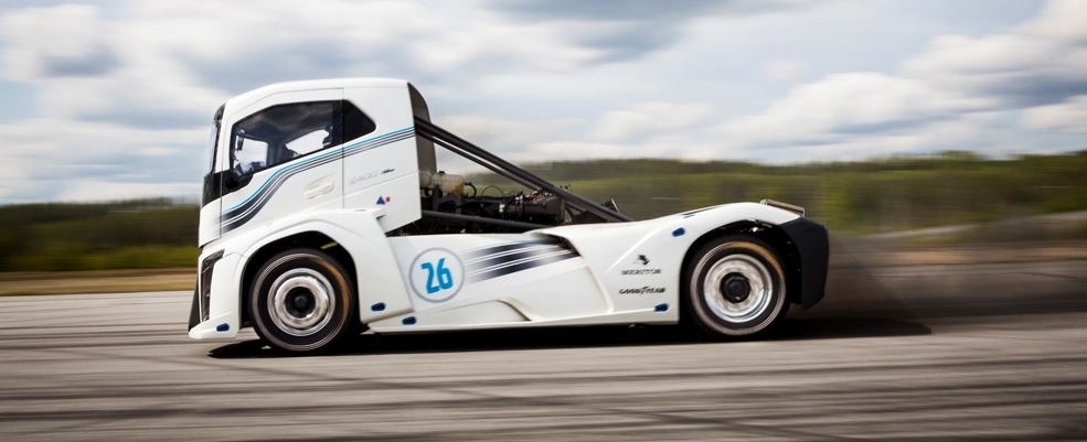 Chyba pierwszy raz we Fleszu coś o samochodzie ciężarowym. Nie bez powodu, bo Volvo bije własne rekordy prędkości i przyspieszenia dla ciężarówek, wystawiając biały bolid o wdzięcznym imieniu "The Iron Knight". Do pobicia było przebycie dystansu jednego kilometra ze średnią prędkością 166,7 km/h ze startu zatrzymanego przez Volvo NH D16 w 2010 roku. I się udało - Żelazny Rycerz uzyskał średni czas przejazdu w obu kierunkach na poziomie 21,29 s, co przekłada się na średnią prędkość przejazdu 169,1 km/h. Przy okazji, pobito również rekord na dystansie 500 metrów z prędkością 131,29 km/h. Na końcu prostej prędkość ciężarówki wyniosła zawrotne 276 km/h!