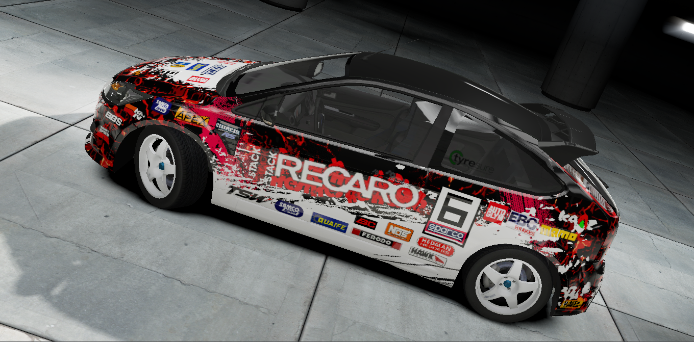 Nie jestem do końca przekonany do tego samochodu. Dużo naklejek typu Uszkodzenia i masa sponsorów... W miejscu tabelki przydałoby się coś konkretnego, jakiś obrazek. =5
