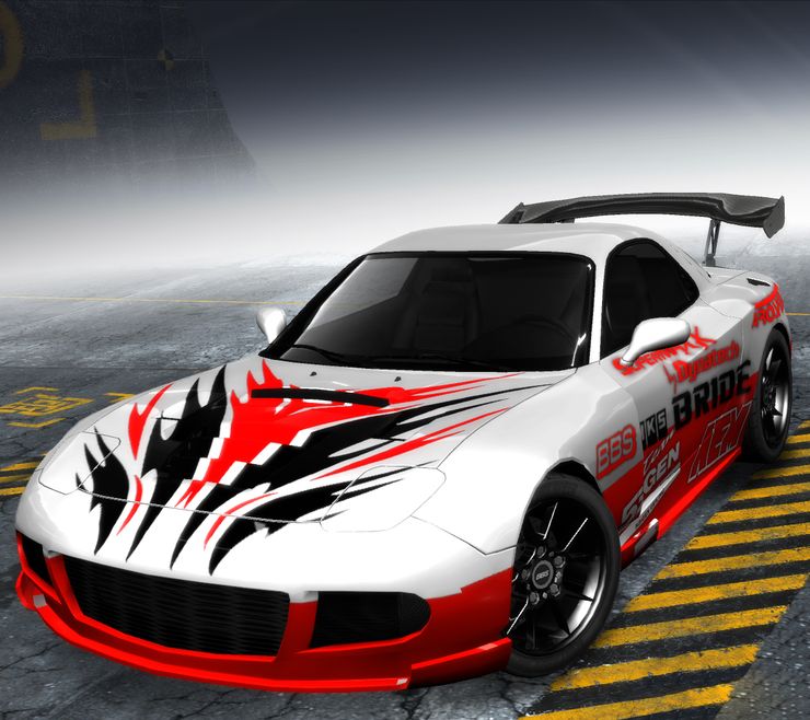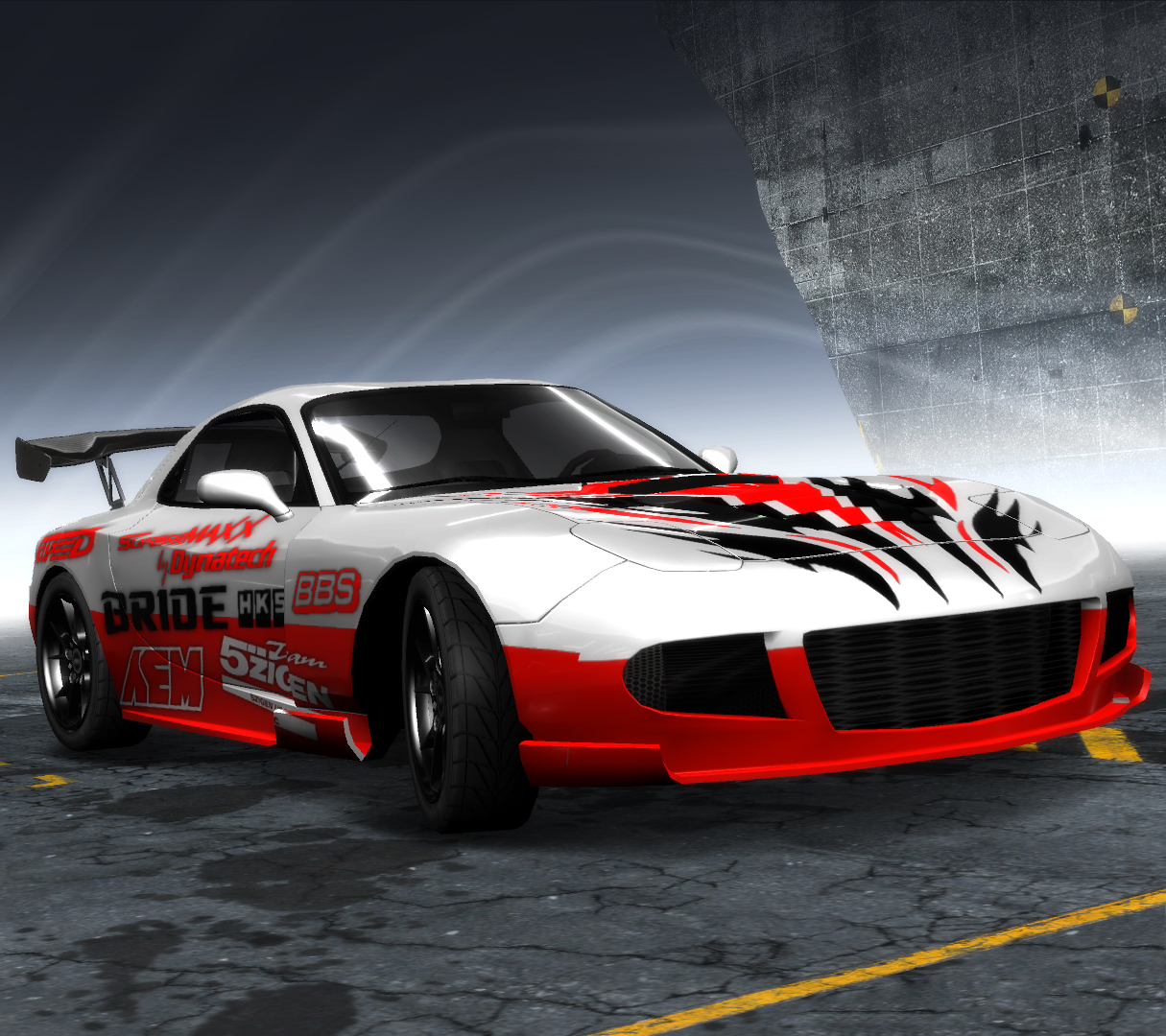Mazda RX-7 stworzona na potrzeby zawodów typu Drift. Samochód został obklejony wszelakimi producentami rynku wtórnego, a sama karoseria pomalowana w barwach ojczystych. Na masce widzimy Tribal, który w moim mniemaniu wygląda jak Feniks. Przed pojedynkiem z Ryo Watanabe postanowiłem trochę wykreować własny styl wyglądu moich samochodów.