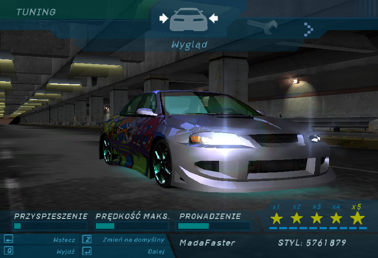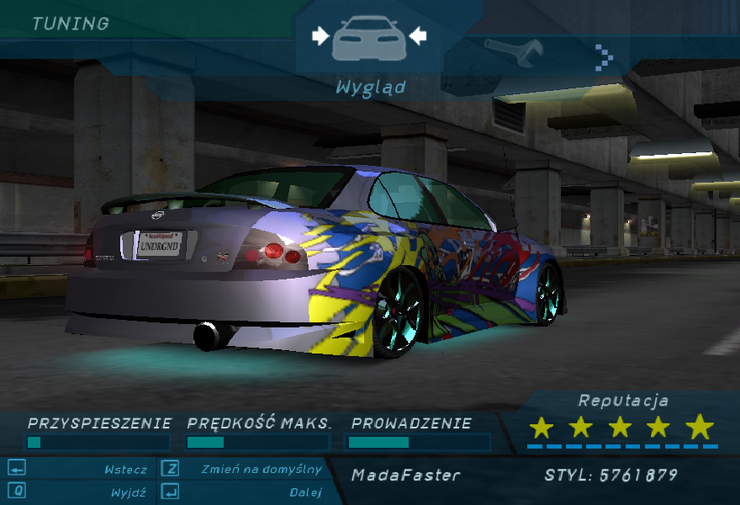 Projekt niszczy... po pierwsze - lakier, a po drugie - barwy w grafice NFSU. Felgi cholernie niepasujące.