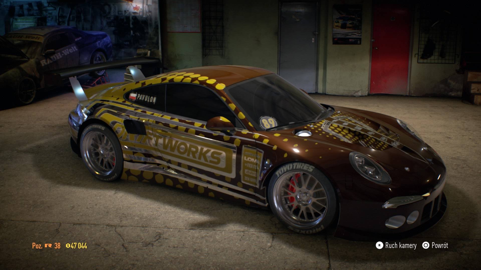 Zauważyłem że jak się nawali wlepek i winyli to się zaczynają rozmazywać, tak jest np umnie na ps4, jakiś limit i potem gra słabiej ogarnia.. Tutaj przykład jest na szybię prawej tylnej... Autko oceniam na 4, jestem nowicjuszem, ale styl tego porschaka rodem z NFS Underground 1, czyli nie ta epoka.. Generalnie autko zacne