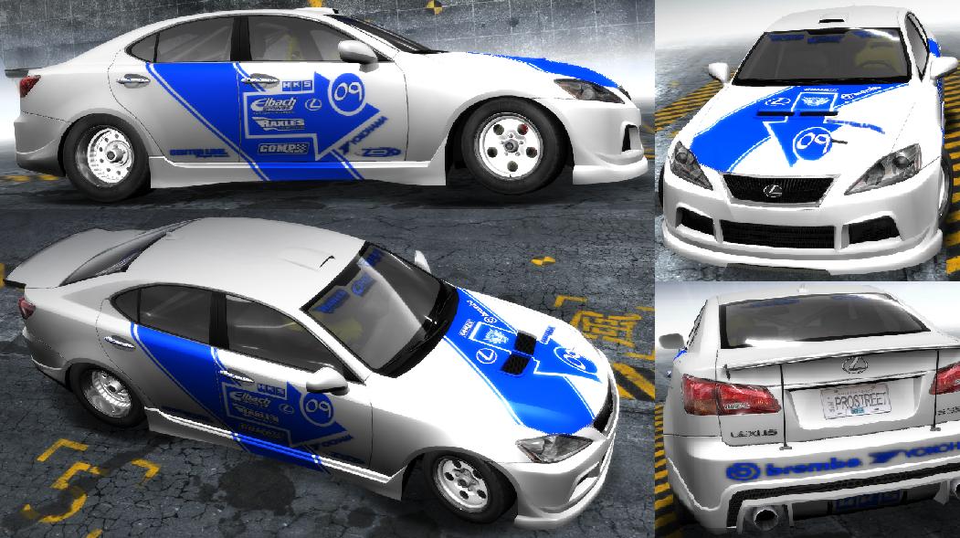 Biało-Niebieski Lexus IS350 z Need for Speed ProStreet.