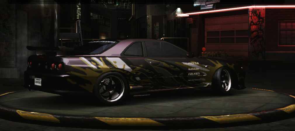 Biały pasiasty winyl z tyłu za bardzo ustawił się do pionu, przez co kompozycja traci na dynamice. Poza tym do body nie mam zastrzeżeń, poza reflektorami i spoilerem, który faktycznie mogłeś zmienić by bardziej upodobnić do BNR32 :p i by to pewnie wyglądało estetyczniej...
