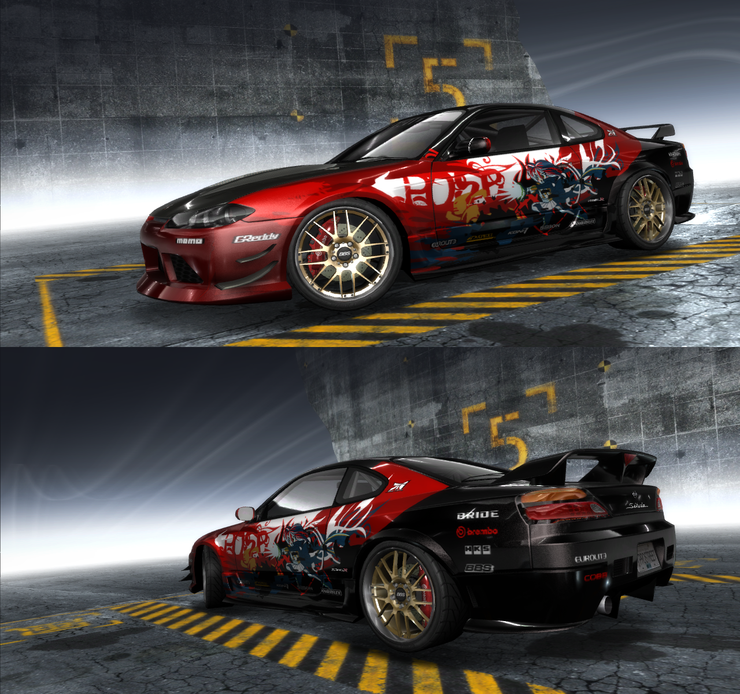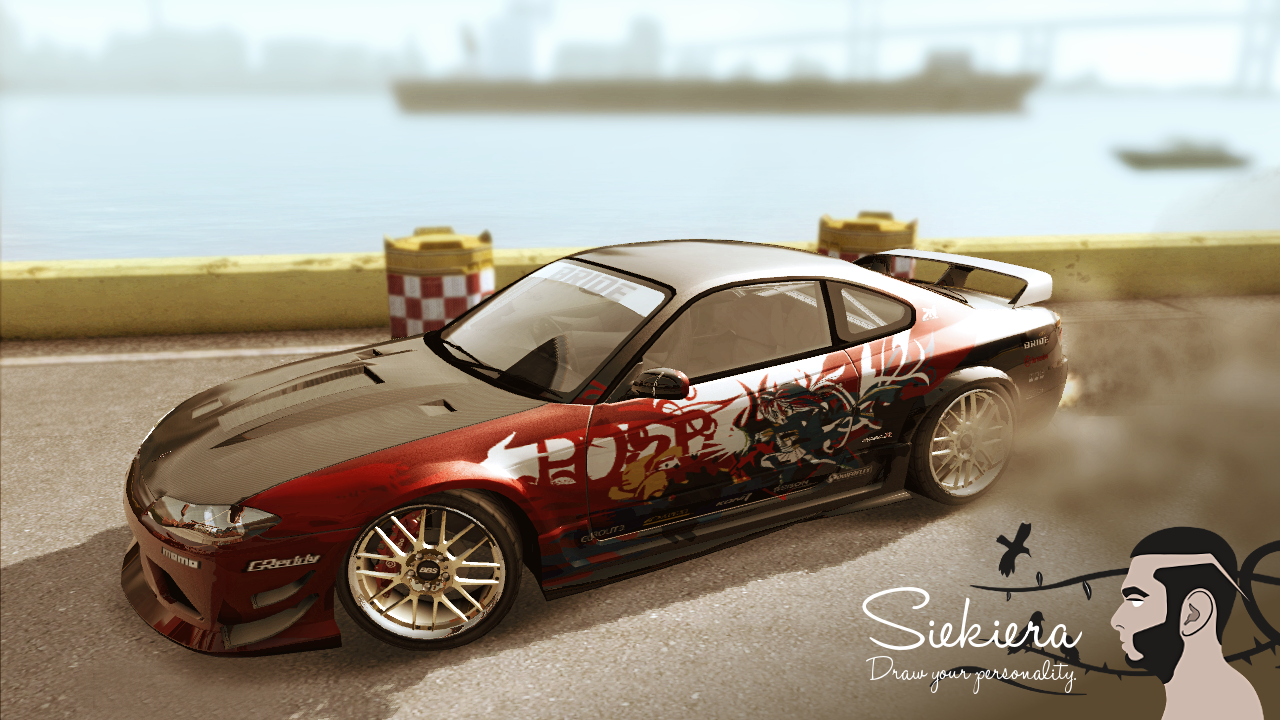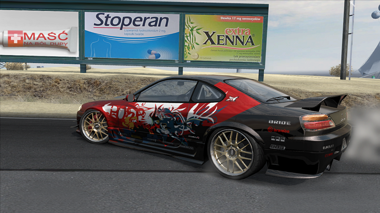 Ładne felgi i bodykit. Malowanie jest zbyt napaćkane i słabo widoczne co tam w ogóle się znajduje. Naklejki sponsorów ładnie ułożone.