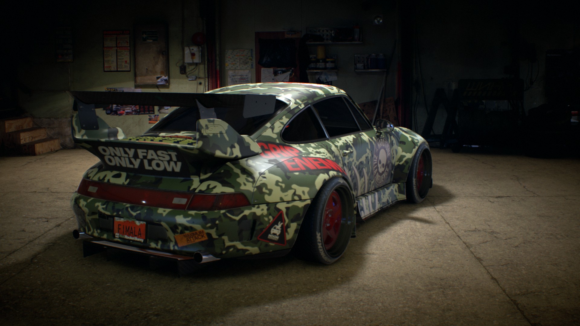 Na auto - spoko, ale NIE na 911. To auto to największa świętość, najlepiej zaprojektowane auto świata. Sam motyw camo jakoś bym jeszcze przebolał, ale w życiu połączenie tego z czerwonymi felgami czy tandetnymi wstawkami pokroju grip enemy. W stosunku do Porsche jestem szczególnie ostry - dla każdego innego auta 2-3, tu postarałeś się na lufę.