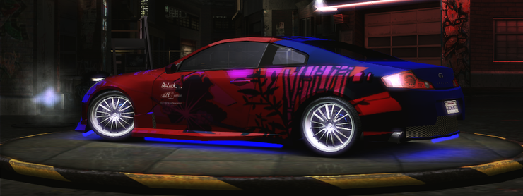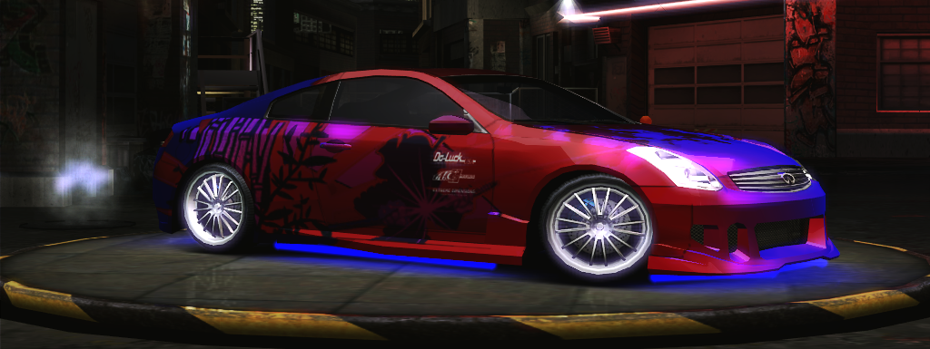 Taka "La Noche"... Ciężko już zrobić coś oryginalnego w UG2. Pierwsze wrażenie skojarzyło mi się z kawałkiem Opuswerk - Sechs. ;D Fajna wstawka z neonem, dobór części klasyczny dla G35 i przejedzone juz troche vinyle.