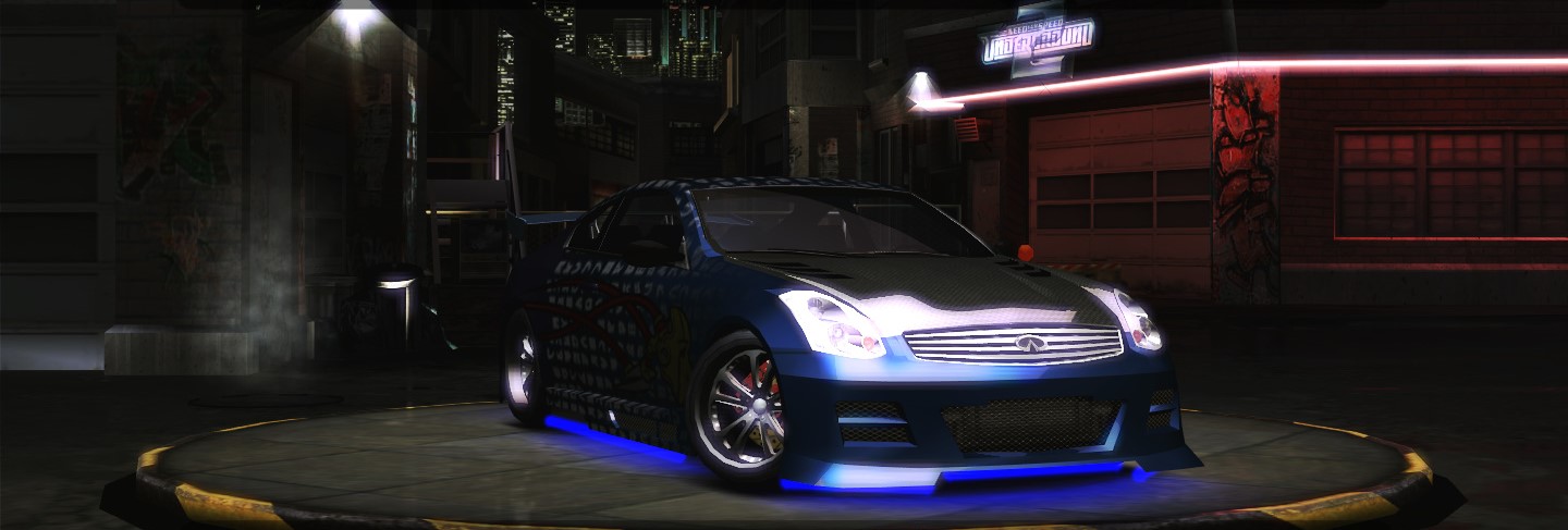 Przydałby mu się dobry masiaż. Jest niestety cholernie mdle i ciężkość projektu uzyskałeś dając neon - ten neon powoduje, że zwracamy na niego uwagę jako pierwszy punkt i przez to przenosisz ciężar na sam dół. To góra powinna być tutaj najbardziej rzucająca się w oczy tak, by zrównoważyć projekt. G35 to wielkie płótno i trudne do tuningu auto - vinyl, który dałeś ma potencjał, szczególnie ten punkt główny zanikający ładnie na niebieskim tle, ale brakuje tu zdecydowanie czegoś mocnego, co przyciągnęłoby uwagę od razu. Dobrze dobrałeś części - zatem myślę, że da się coś z tego ugrać.