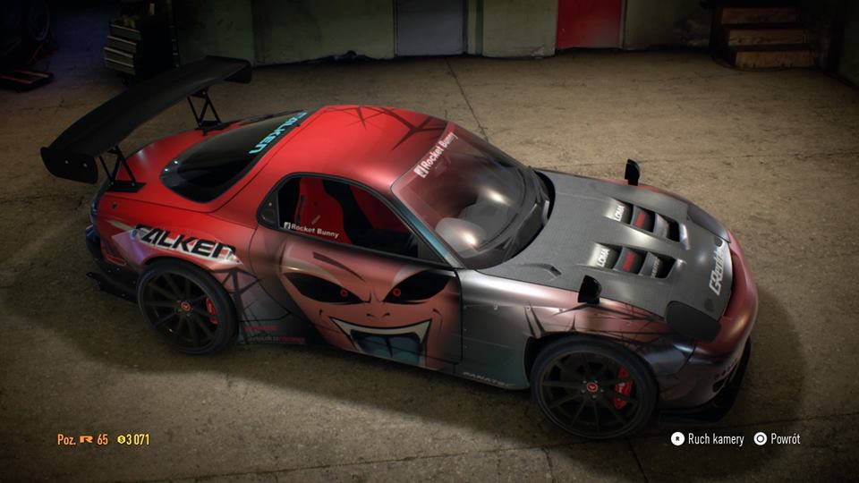 Siekierka ma inne felgi nasti Co do auta to sory, ale po prostu mi się nie podoba. Kolory są nijakie i według mnie niszczą potencjał całego projektu. Postać ciekawa, ale kolor zabiera jej straszny (?) charakter. Wszędzie pełno gradientów, przy kołach jakieś kolce, karbonowa maska nie wygląda jak karbonowa i sponsoring też mógłby być lepszy. Zrobiłeś postać - wow super! - ale reszta wygląda po prostu mega słabo. 6