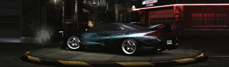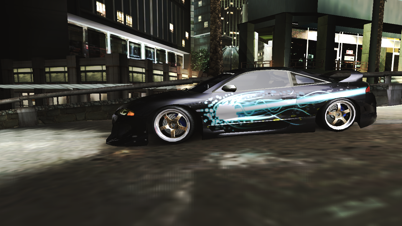 Piękne felgi, idealne do ciemnego nadwozia. Naklejki całkiem dobrze wypadły, oldschoolowo. Jedynie ten bodykit tu kuleje.