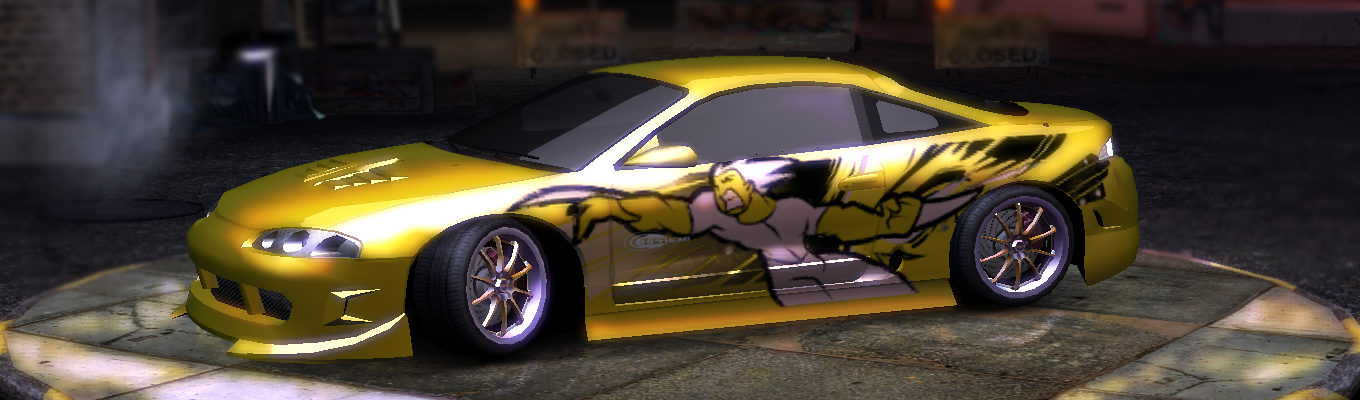 Mnie również projekt nie porwał. Jest tu zbyt żółto. Nie wiem czy to przez auto czy przez kompozycje całej sceny ale po prostu nie odbieram tego pozytywnie. Dodajmy do tego tylni zderzak, który niszczy bryłę okrąglutkiego eclipse'a. Nie jestem też przekonany co do tej fioletowej bieli, jakoś z tą żółcią w ogóle się nie łączy. Na auto głos oddałem bo jednak wypadło lepiej od konkurenta ale nie na tyle, żeby mi się spodobało.