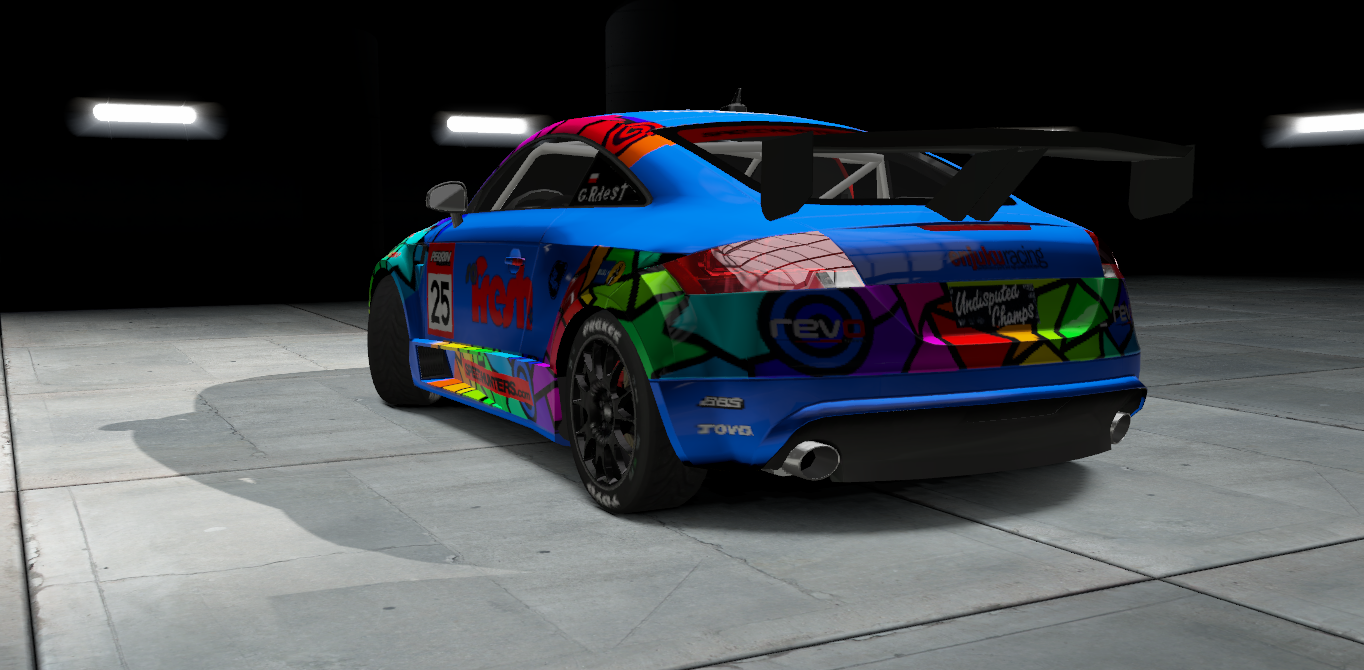 Co do maski i innych rzeczy - mógłbym zrobić lepiej, ale mnie męczyło trzymanie klawiszy odpowiadającej za operowanie kamerą (która była do dupy najdelikatniej mówiąc) i jednoczesne operowanie naklejkami. No i zapisywanie co chwila z poziomu ustawień graficznych żeby nie stracić aktualnego stanu pracy, jak to było kiedyś przy jednym aucie xP