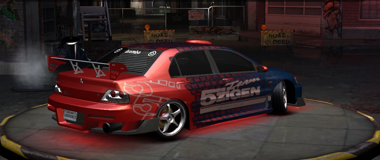 A co do Lancera. Możesz w nim zmienić jeszcze właściwie wszystko niestety. Zamysł vinylworku, choć niezbyt oryginalny nie jest taki najgorszy, ale kolory nie grają w stu procentach. Soiler, felgi i niektóre elementy tego body kitu może udałoby się obronić, ale generalnie wybór części w całości do ogarnięcia od nowa. Grzyb na dachu i neony są szpetne, niedzisiejsze i generalnie trudne w użyciu.