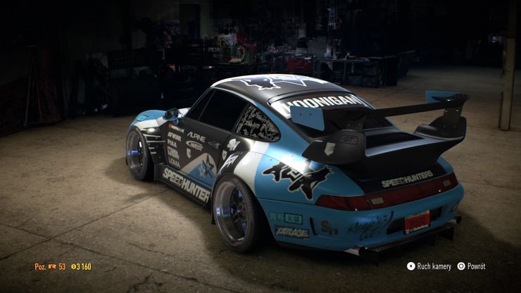 Bardzo fajny, choć prosty motyw główny, dobrze zgrywa się z sylwetką 911, napisy i przypadkowe wlepy znów psują efekt. Kolory graja, ale nie są jakieś zjawiskowe.