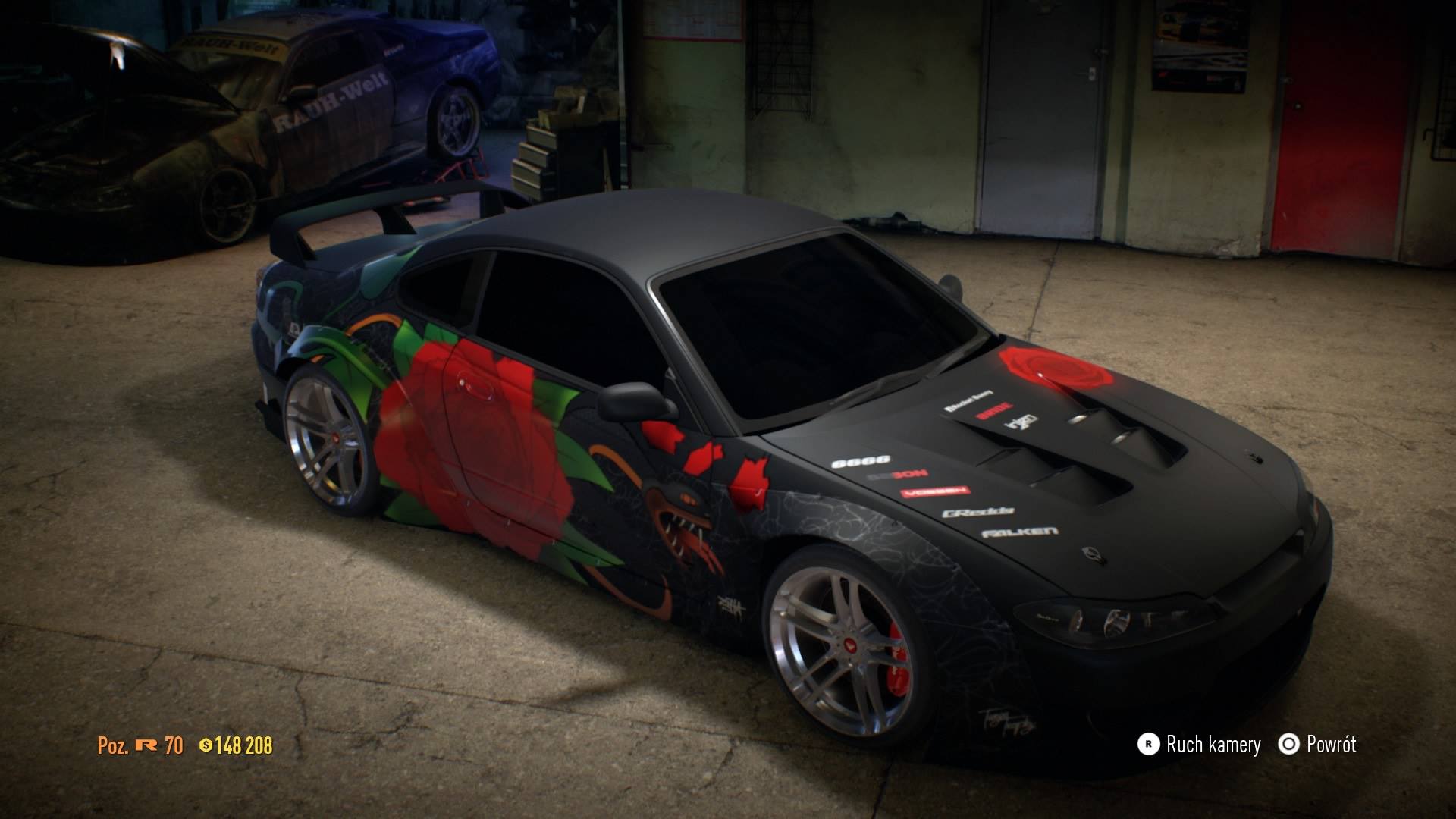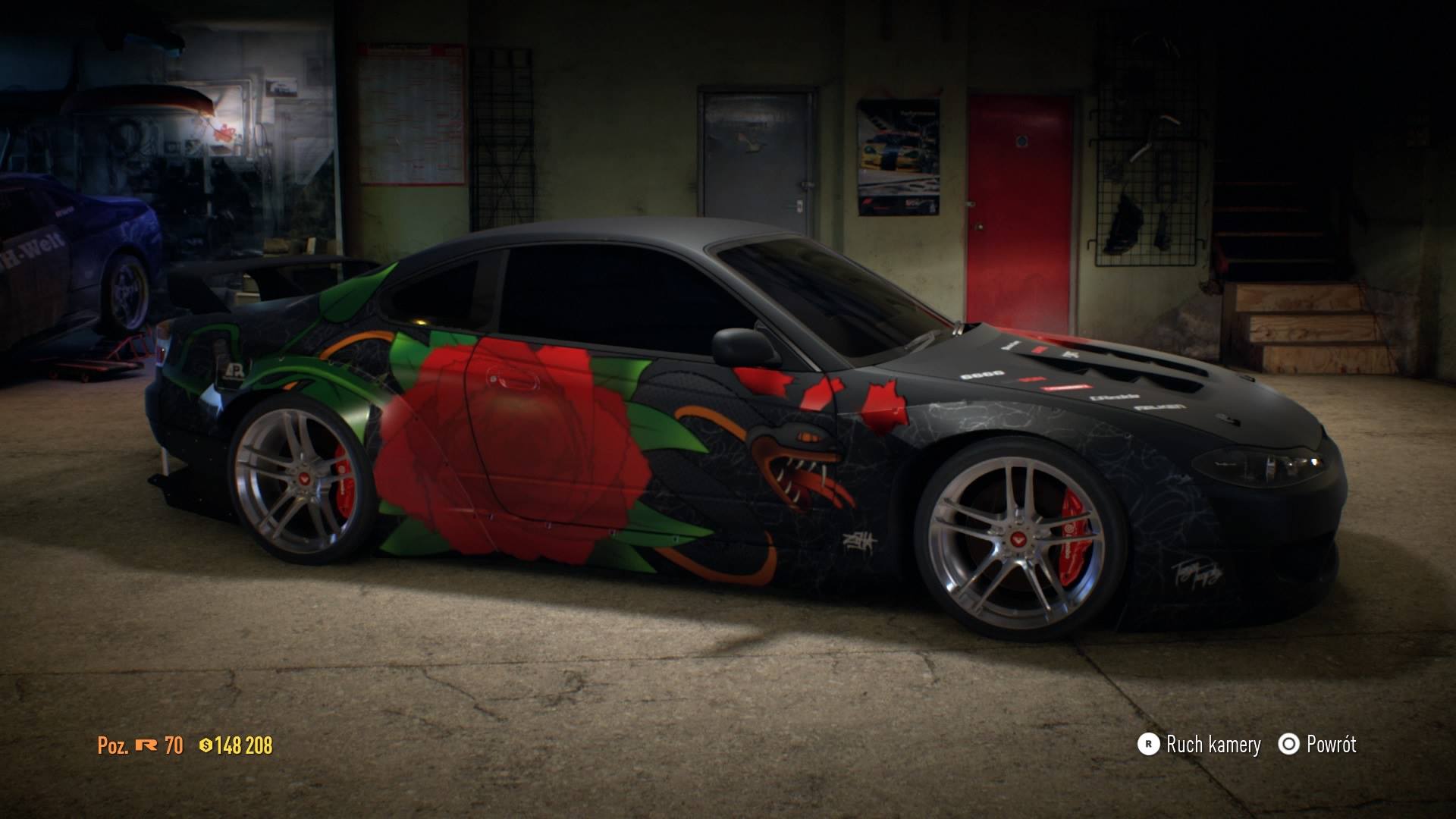 Pomysł na różę na aucie zrodził się w mojej głowie już grając w betę '15, ale przez ten czas nie mogłem tego motywu wykorzystać w jakiś sensowny i poukładany sposób. Aż do sierpnia tego roku, kiedy postanowiłem się spiąć i jednak stworzyć ten jakże przepiękny kwiat na Silvii, która była "autem bazowym" do tego malowidła także w becie. Nie chciałem dawać dużo sponsorów ponieważ, zależy mi na tym, by roślina jak i wąż były główną atrakcją i nic nie ma rozpraszać w oglądaniu vinylworku. Poleciałem trochę artystycznie, ale połączenie róży i węża wcale nie są dziełem przypadku lub stwierdzenia przeze mnie "bo fajnie wygląda" czy coś, lecz bardziej przelaniem emocji, ale interpretujcie jak chcecie albo po prostu oceńcie same bazgroły.