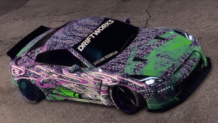 Przod wygląda jakby komuś wybuchla puszka zielonego sprayu, a bok jakby ktoś puścił belta z fioletowych i limonkowych skittlesow.