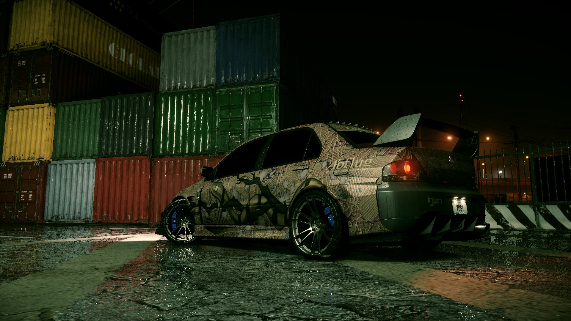 Po trzecie, przejdę do auta. Wąż może rzeczywiście jest za duży, mogłem go zmniejszyć i zrobić miejsce na sponsoring na przednich drzwiach. Jeśli chodzi o body, to NFS15 raczej nie daje większego pola manewru na Evo, więc pracowałem na tym. Co do felg, to moim zdaniem są ok, chromowane za bardzo...