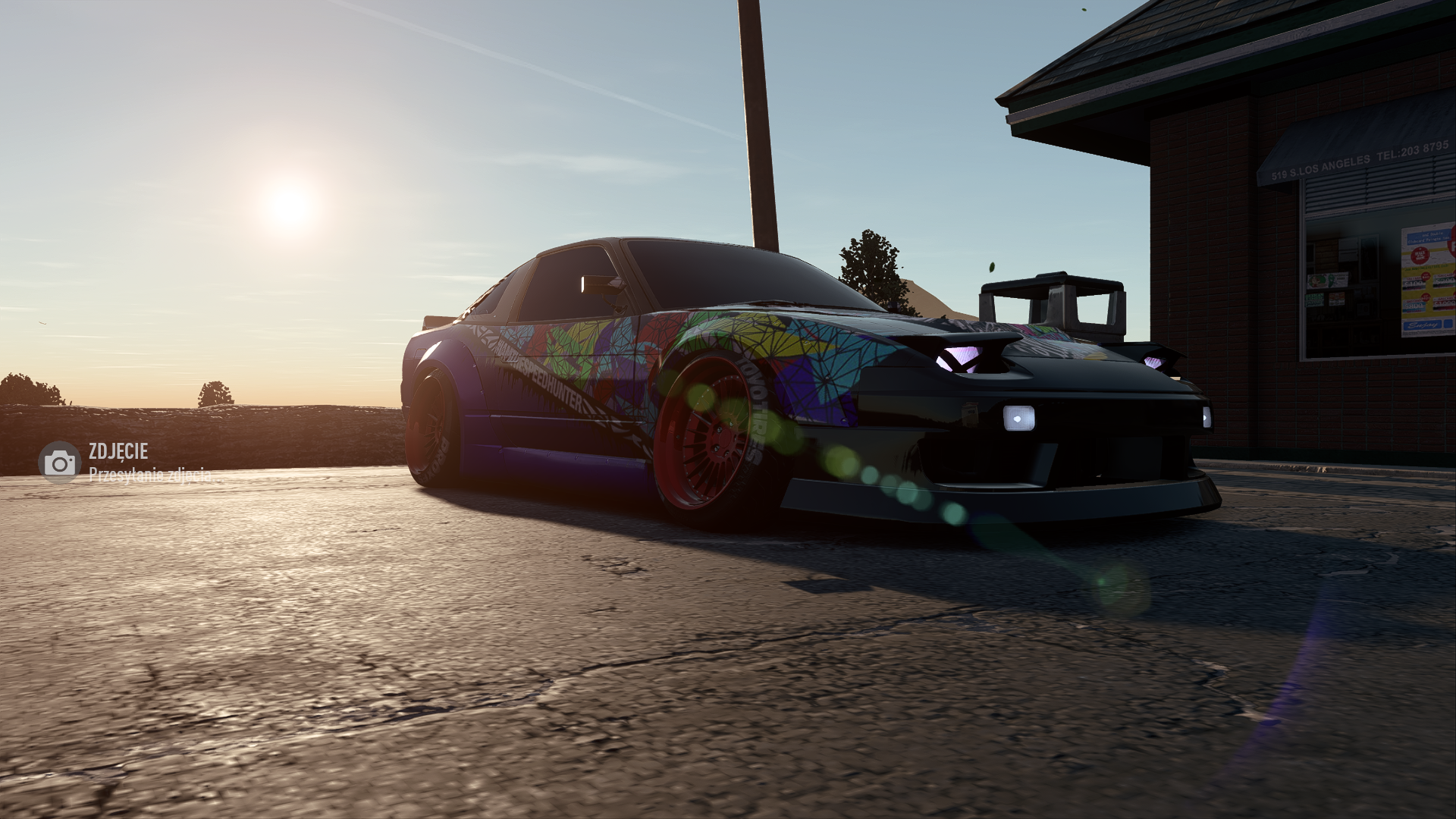 Czerwone felgi wyglądają zacnie.. Taki prawdziwy fajny burdel z kolorów zrobiłeś. Szkoda ze nie postarales się o sponsorów, bo auto wyglądało by na profesjonalny drift car. Malowanie maski nie pasuje mi i części jakoś nie leżą..