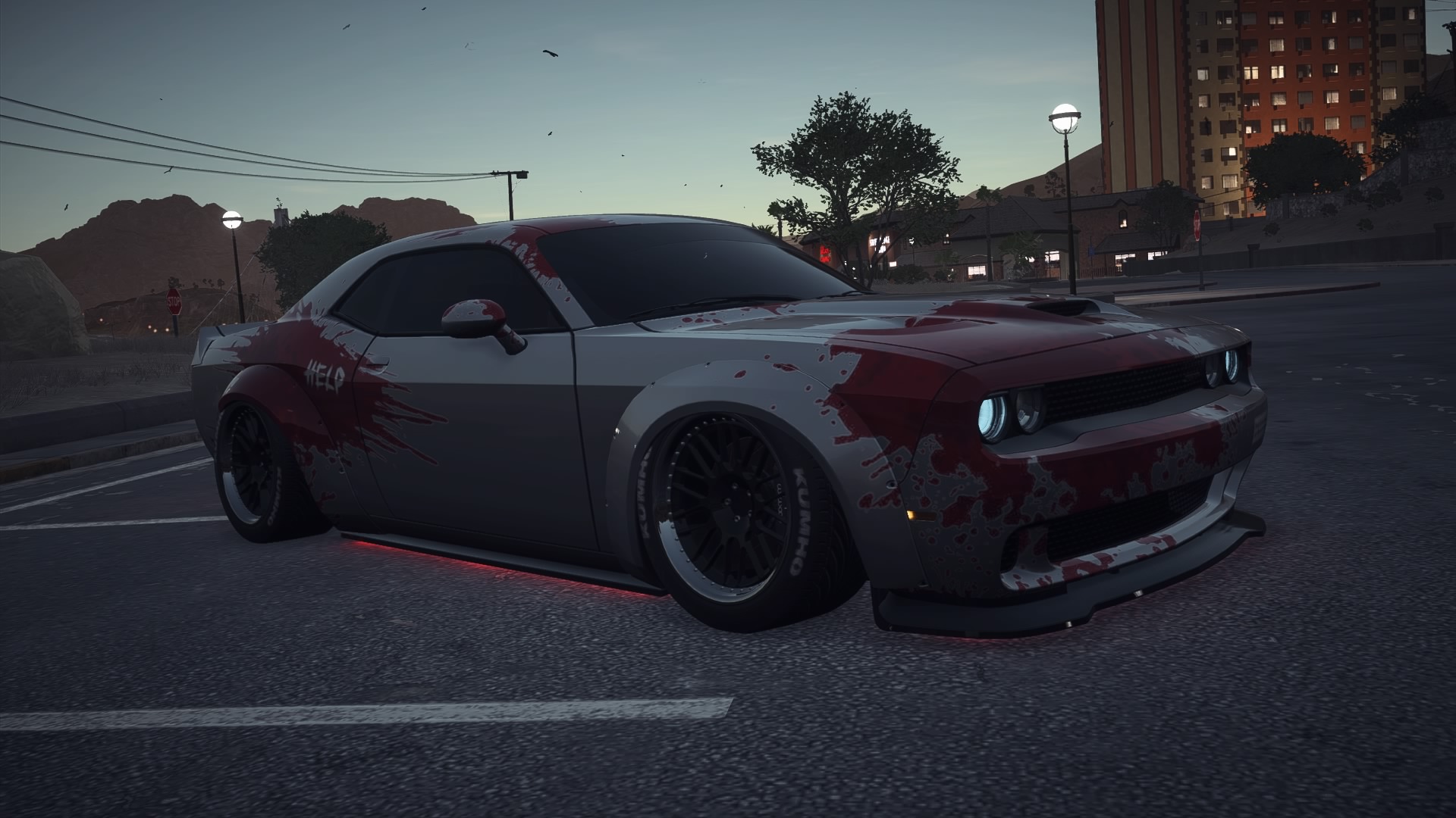 Faktycznie to auto całe woła o HELP, by ktoś je uratował. To nie jest styl, to, co zrobiłeś na tym nadwoziu to nawet niedokończona baza pod właściwe malowanie. Jak już lecisz w krew i "help" to było rąbnąć ludzką rękę z żyletką.