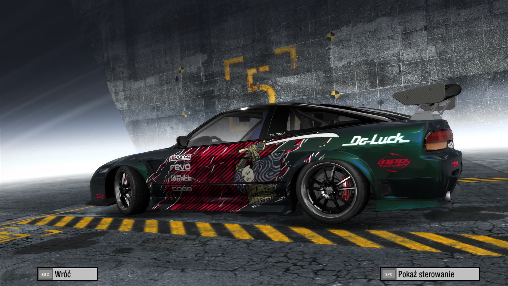 Kolejne auto z Pro Street, tym razem jest to 240SX, którego używam do driftu. Motyw główny to samuraj, a jako tło pod niego wybrałem odcienie różu. Główny kolor auta to wyblakły niebieski, choć na zdjęciach wygląda bardziej na zieleń, (wykończenie jest perłowe). Nie wiem czy każdemu ta kolorystyka przypadnie do gustu, ale ja lubię taki styl. Na masce miał się jeszcze znaleźć taki sam wzór jak na boku, ale brakłoby mi kilku warstw, dlatego postawiłem na carbon. Myślę, że progres jest całkiem spory w stosunku do pierwszej pracy. Zapraszam do komentowania i oceniania