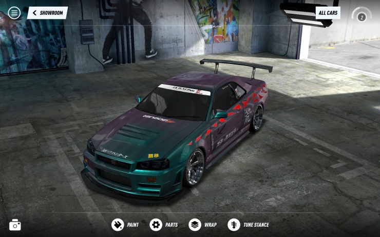 Części nad wyraz sztampowe, serio, mam wrażenie że widzę już setnego Skyline w tym zestawie. Malowanie chaotyczne, japońskie znaczki wrzucone bez pomysłu, jedynie kolorystyka jest całkiem znośna.