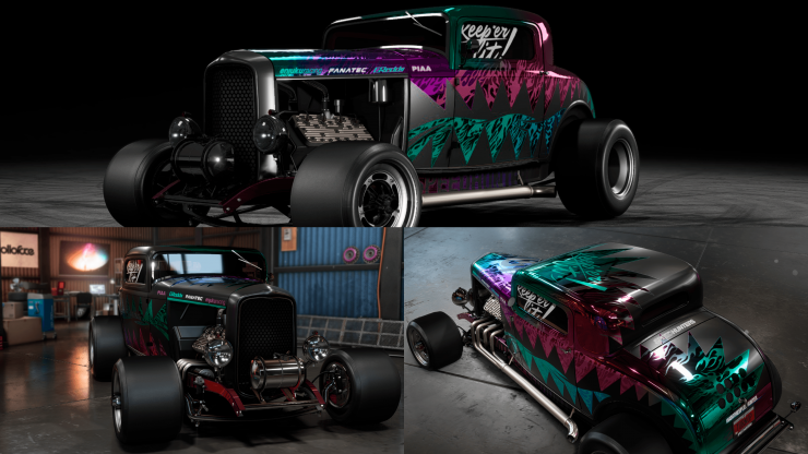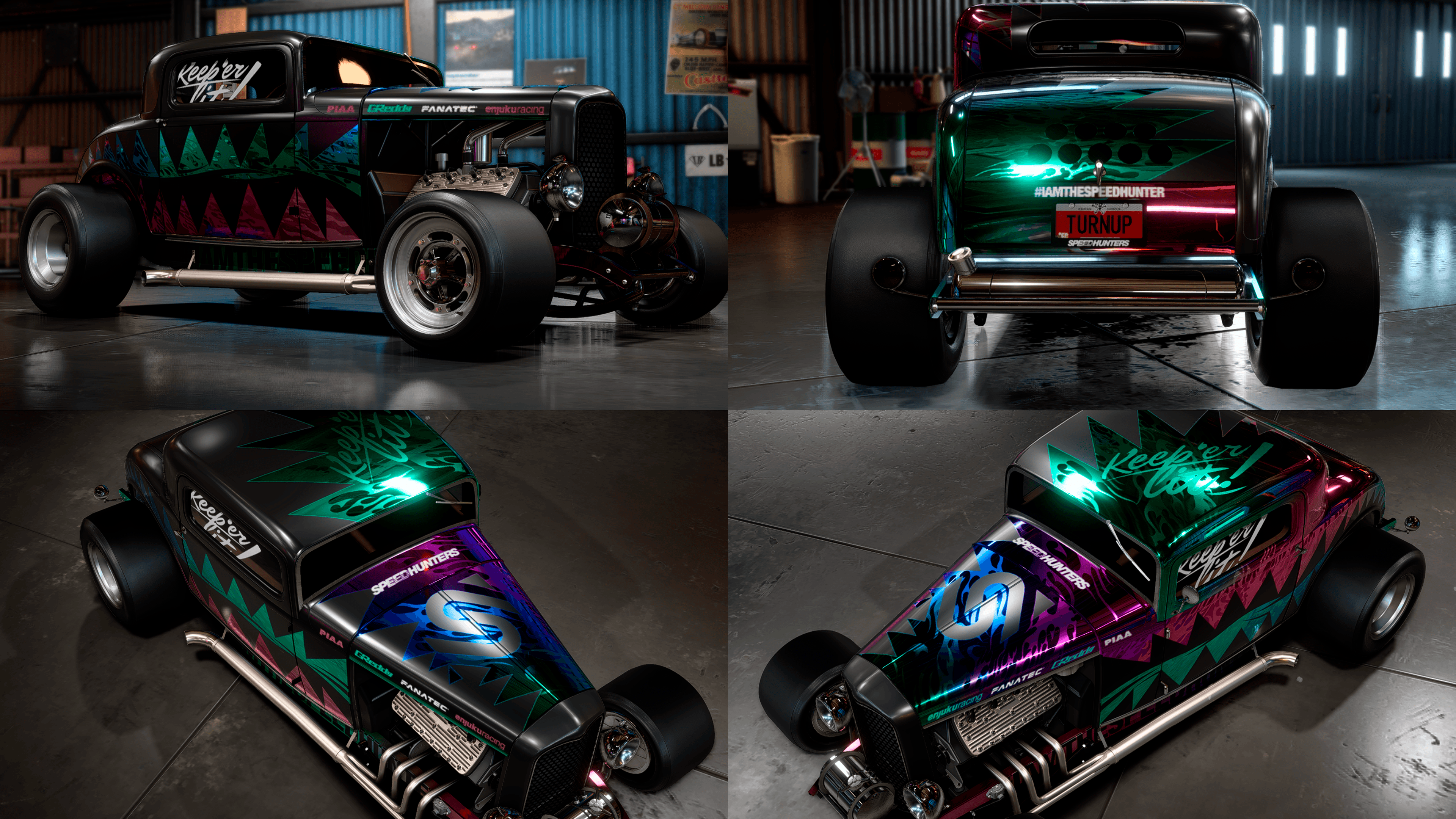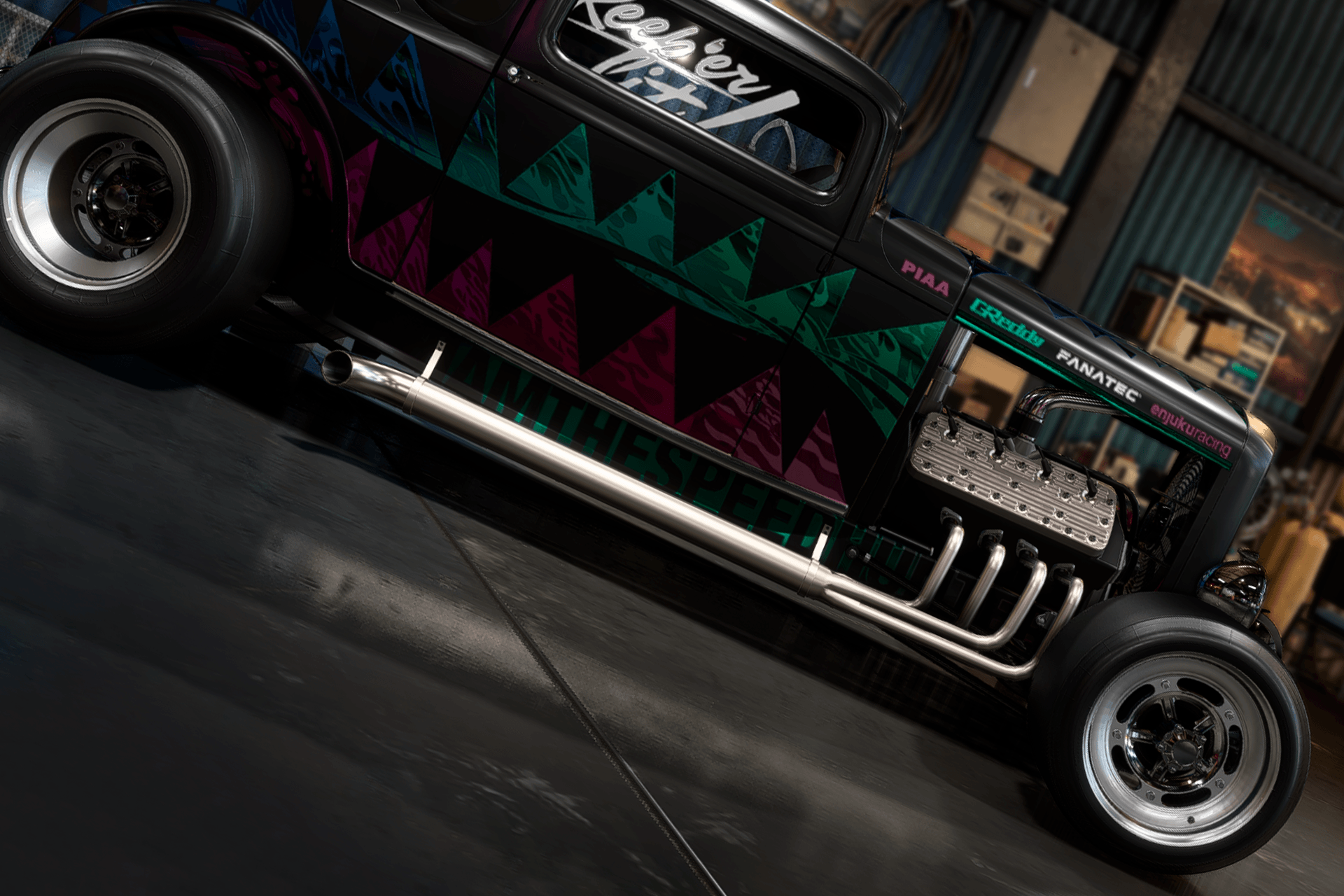 Miałem zrobić 3 auta, ale z racji tego, że raz - dostałem jakichś oldschool vibes robiąc Colorado, a dwa - brakowało tu czegoś do dragów - naszykowałem czwarte auto. Wykorzystałem motyw "gęby z zębami" z rat style w mniej konwencjonalny sposób. To nadal ten sam team, ale bez żółtego, z poszanowaniem dla tego cudnego Forda.